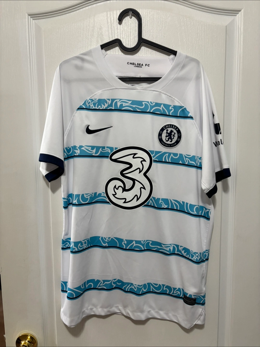 Selling a Nike Chelsea FC 2023/24 away jersey in size large! It's in great condition and ready for a new fan. The jersey features the iconic Chelsea Football Club logo and the Nike Dri-FIT technology. Perfect for showing your support for the Blues!