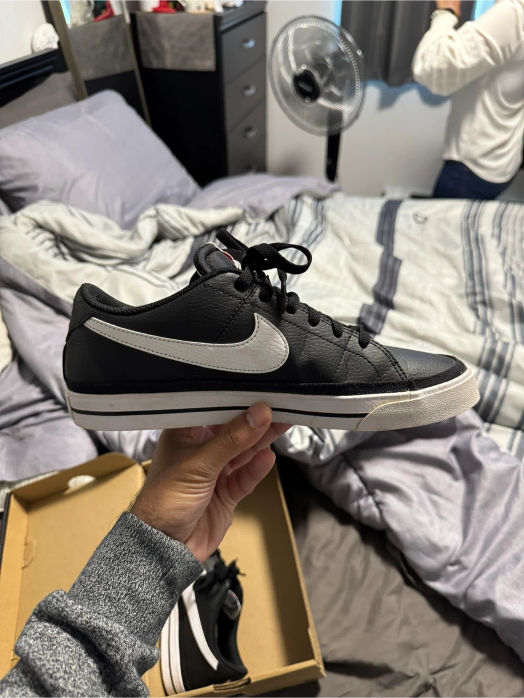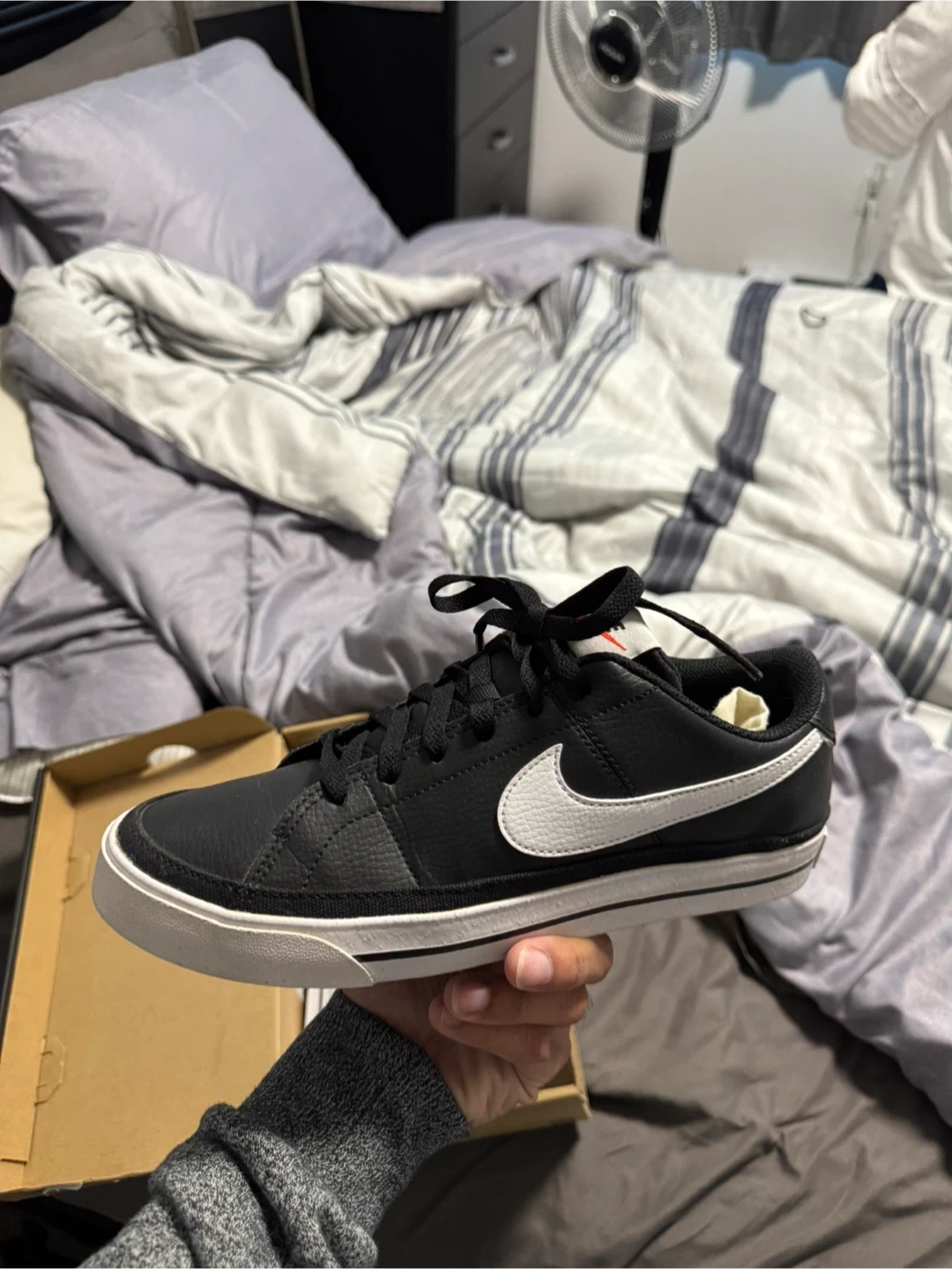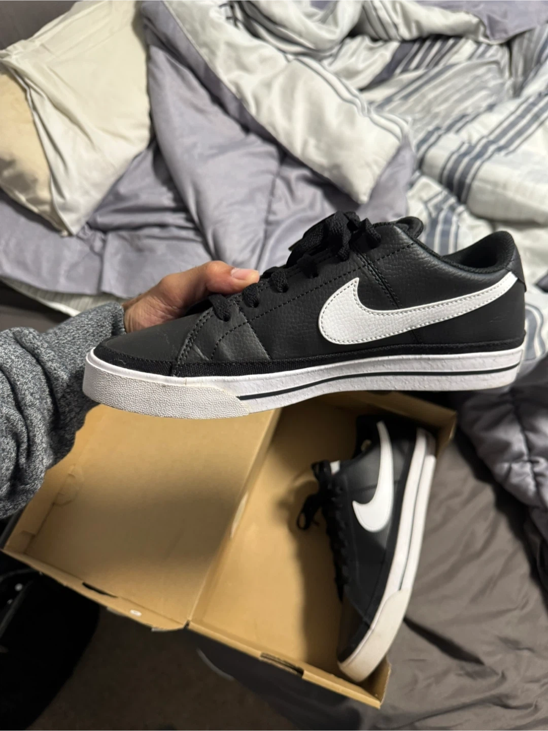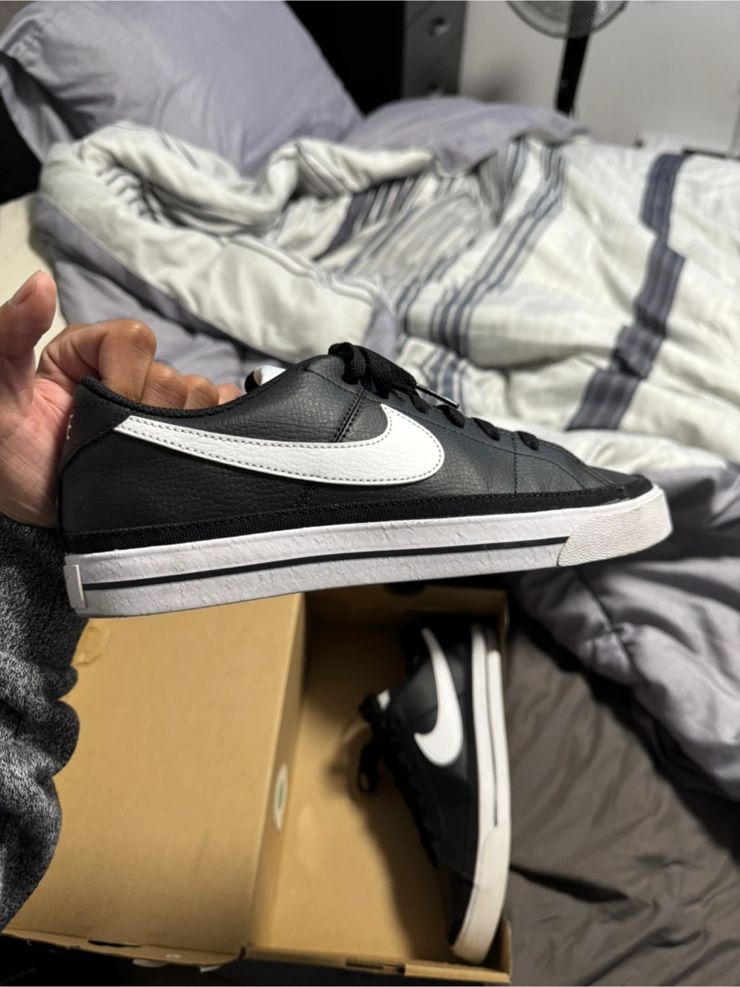 10Selling a pair of Nike Court Legacy NN shoes in black and white. They are in great condition and come with the original box. Size is 7.5