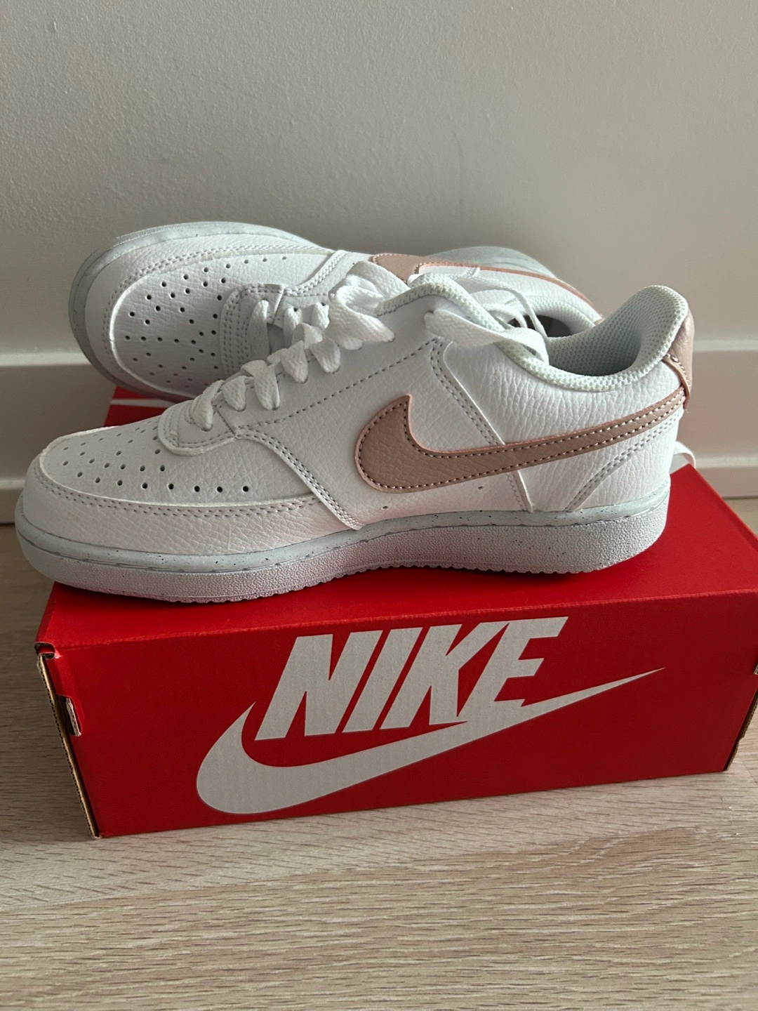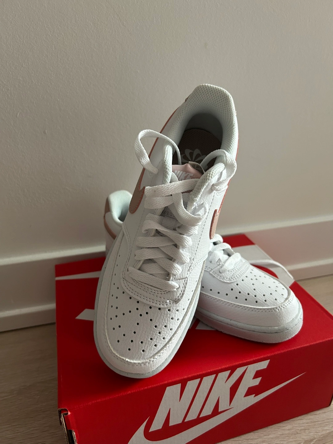 16New Nike Court Royale 2 sneakers. White leather upper with rose gold accents. In excellent condition. Brand new Comes with box but a different one . Size 6