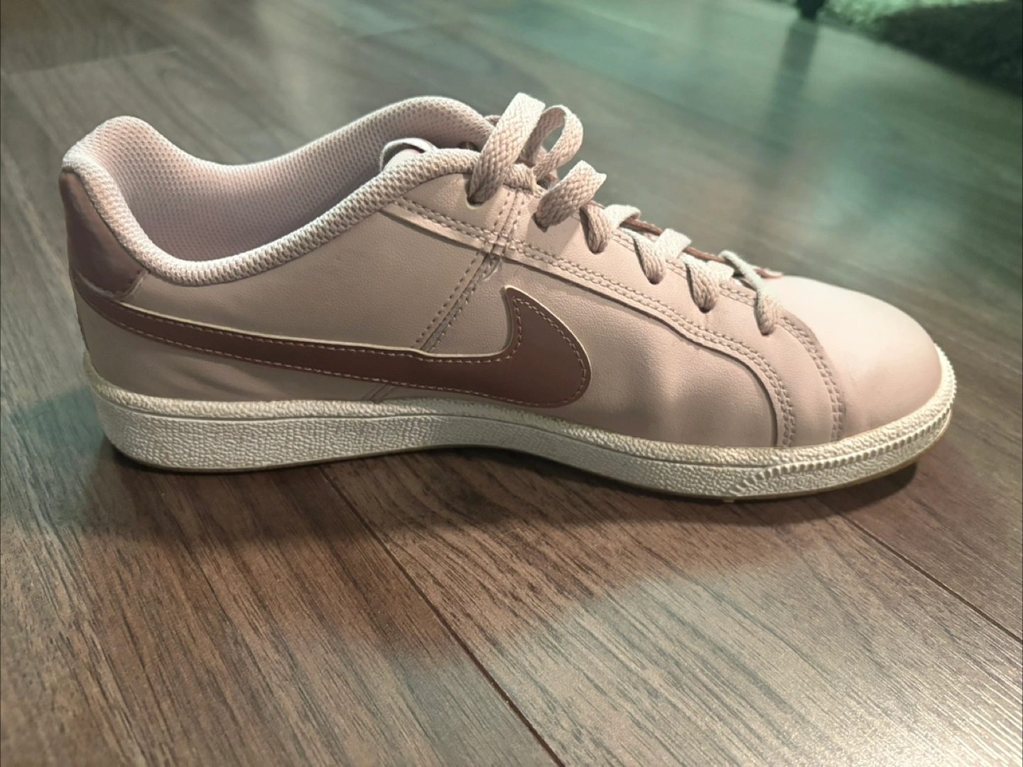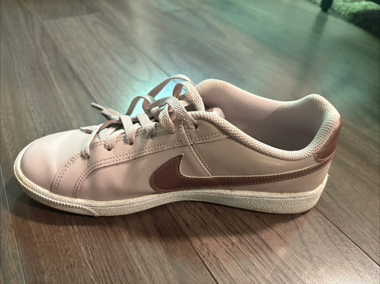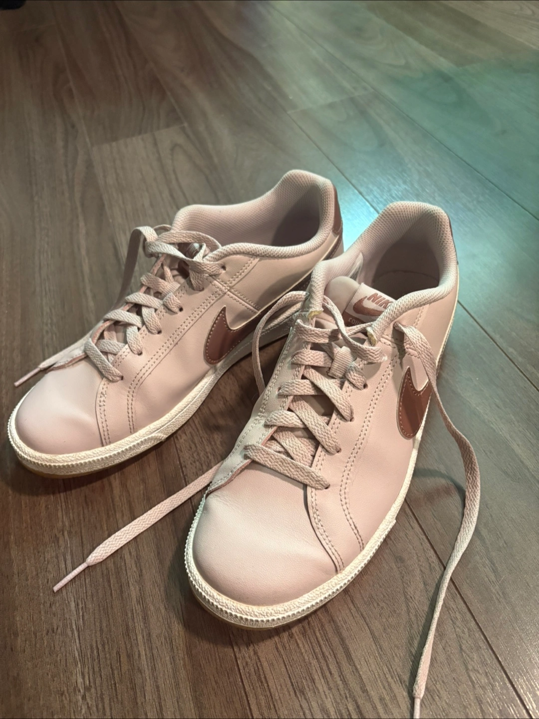 68Selling a pair of Nike Court Royale sneakers in a lovely light pink and bronze colour. They are in great condition and a women's size 8.5 (US). Looking for a new home for them!