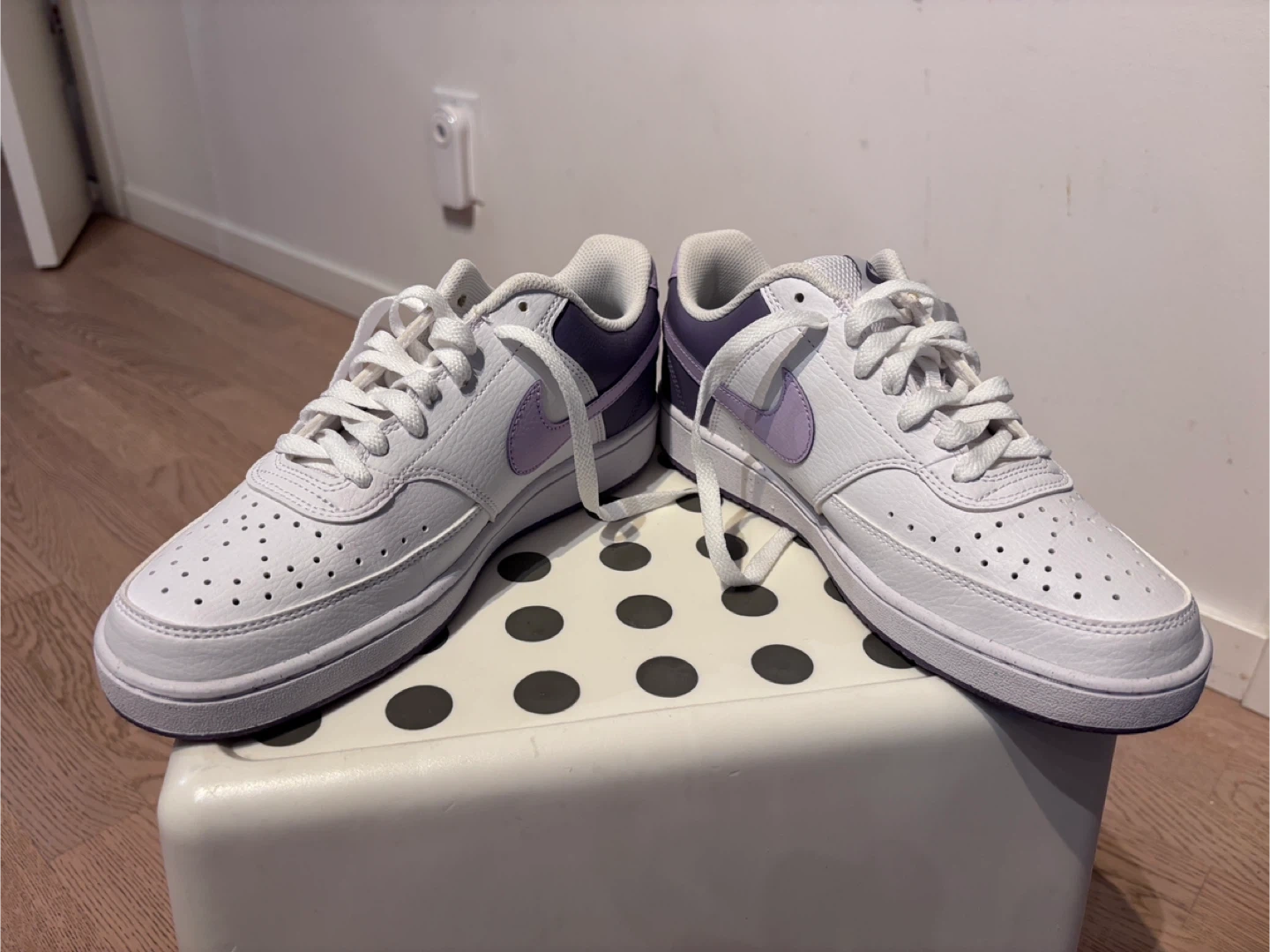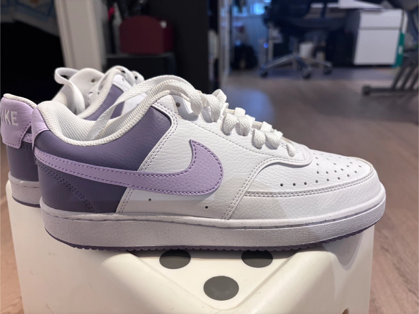 60These Nike Court Vision Low sneakers are in great shape! They feature a stylish lilac and white colourway. Perfect for everyday wear!