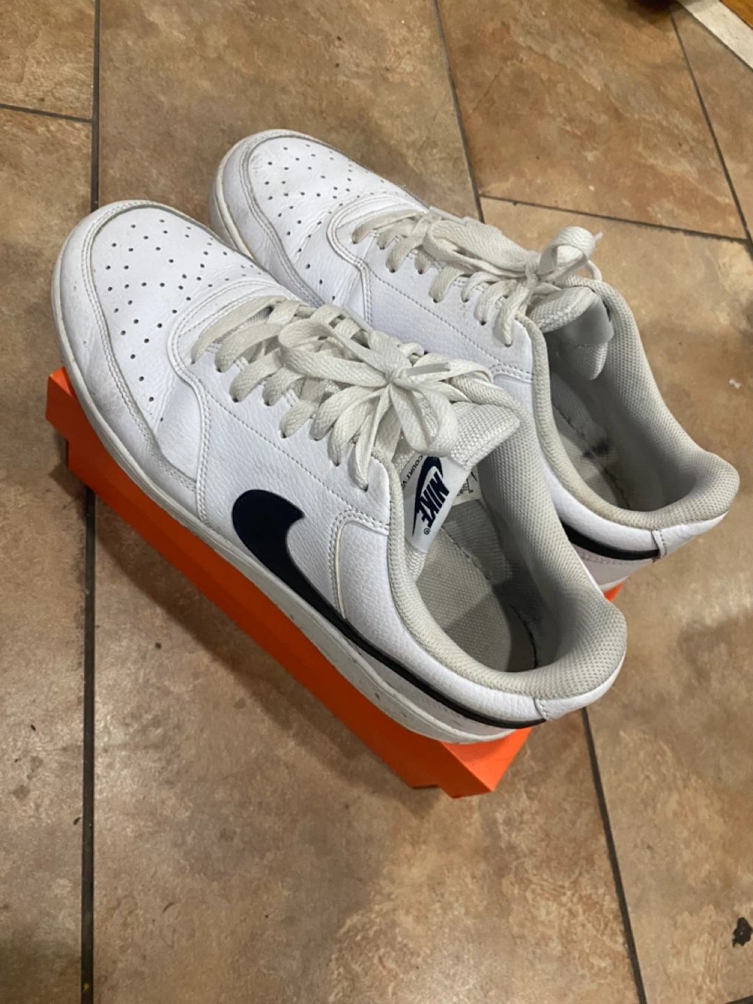 Selling a pair of Nike Court Vision Low sneakers in white. They are in good condition and come with the original box. These classic sneakers are perfect for everyday wear!