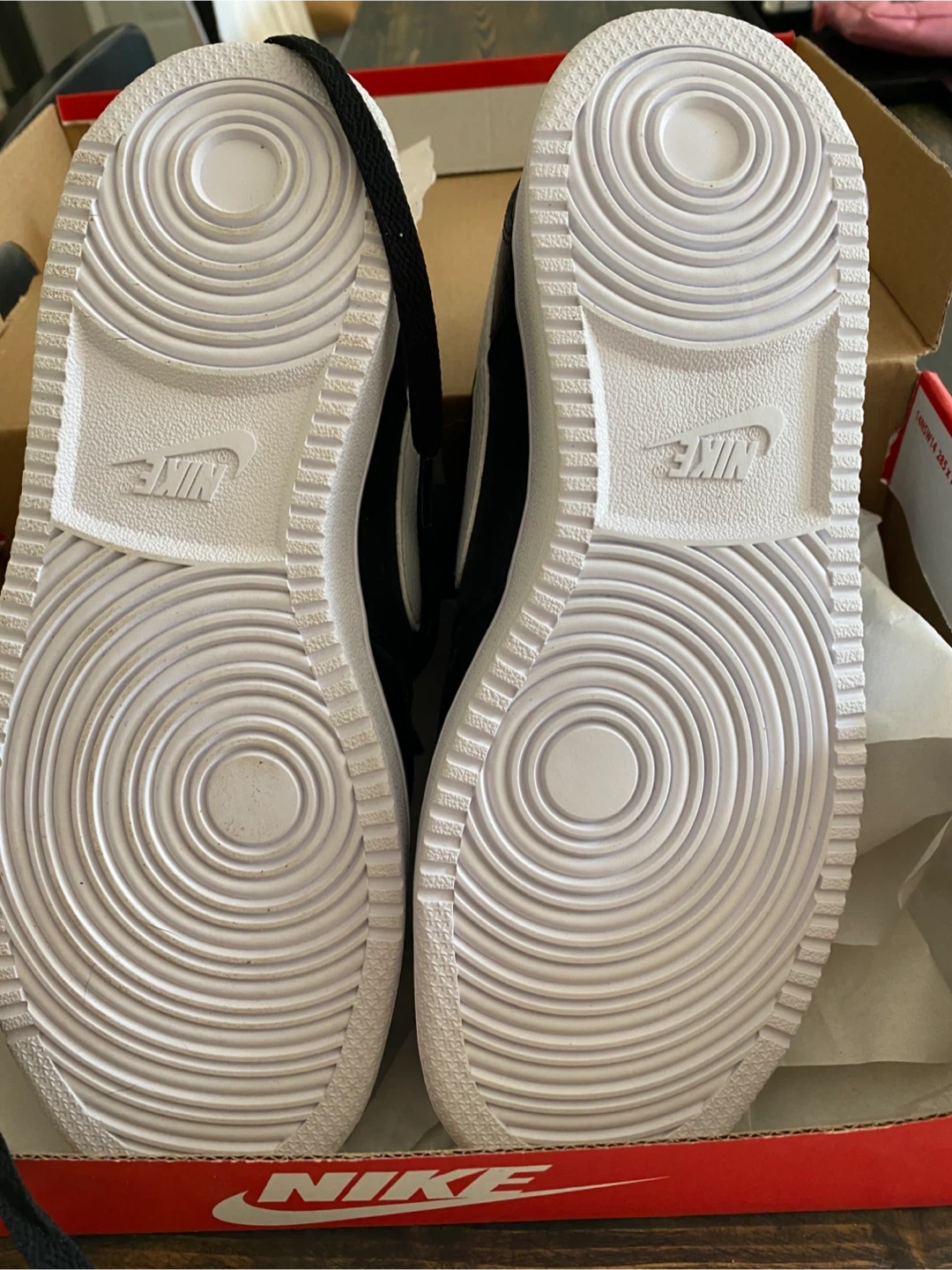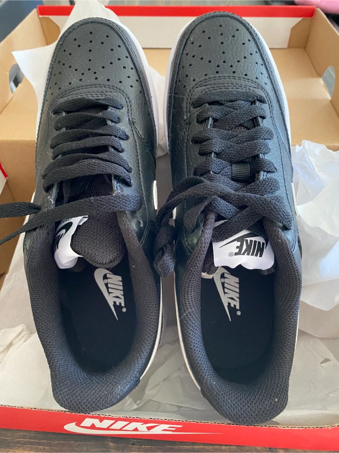 15Selling a pair of women's Nike Court Vision Low sneakers in black and white. These are a size 7 and come in the original box. The box indicates the model number is CD5434 001. They were originally bought for $100