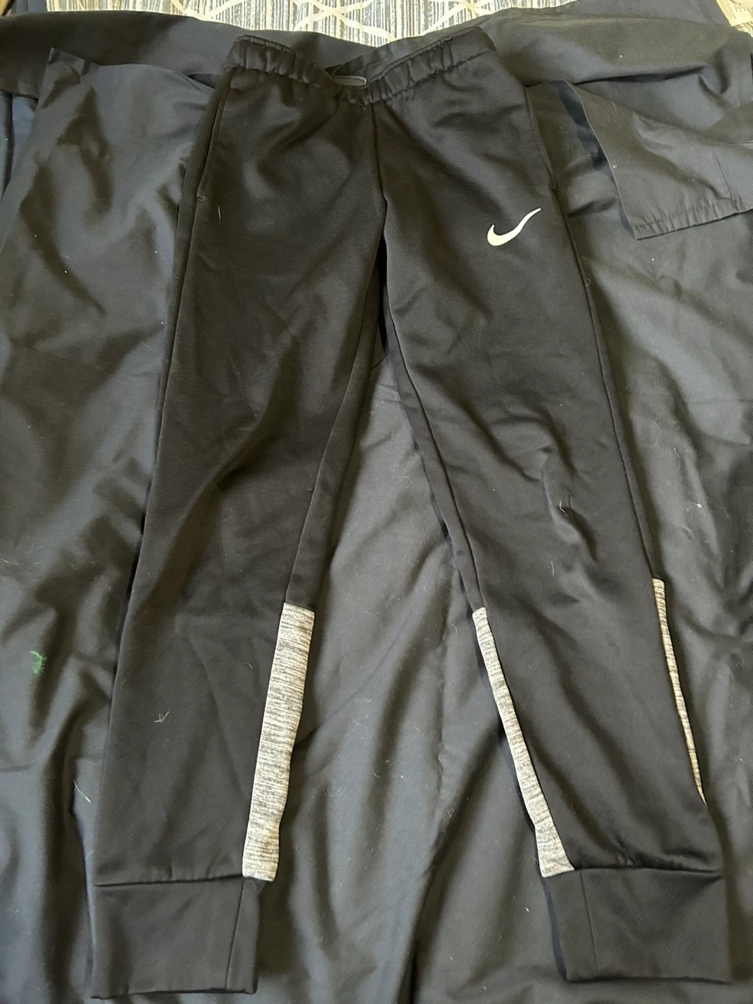 65Selling a pair of Nike Dri-FIT track pants in size medium. They're black with a stylish grey accent near the ankles. In great condition and ready for a new home! Girls medium. Pick up Acton