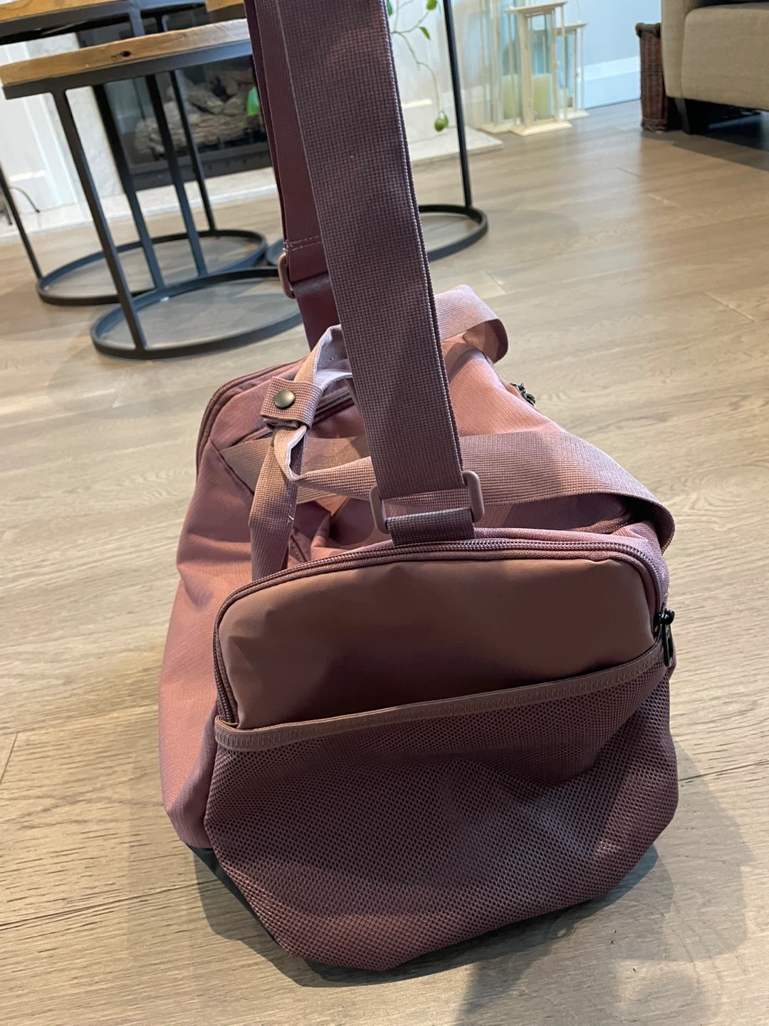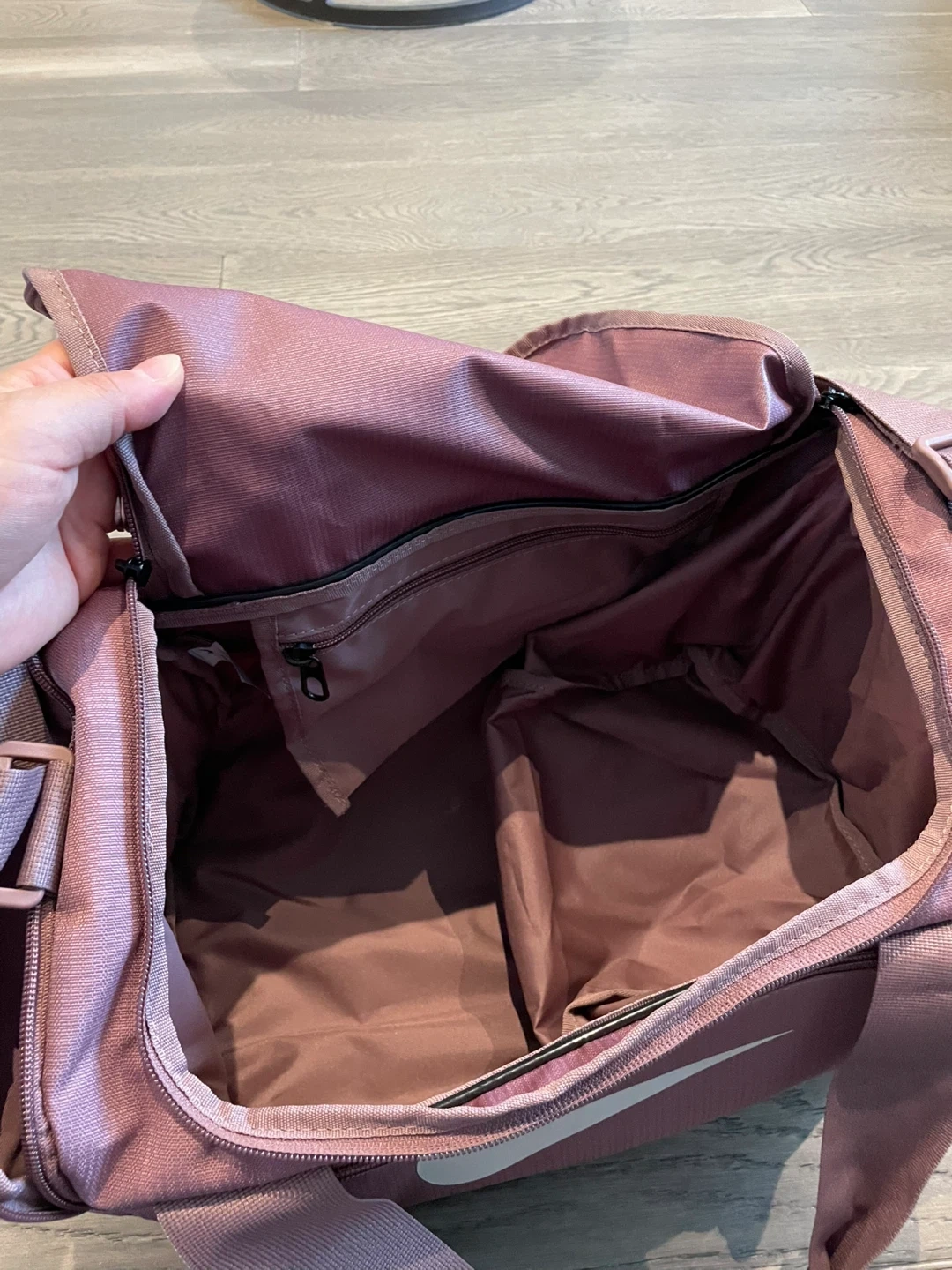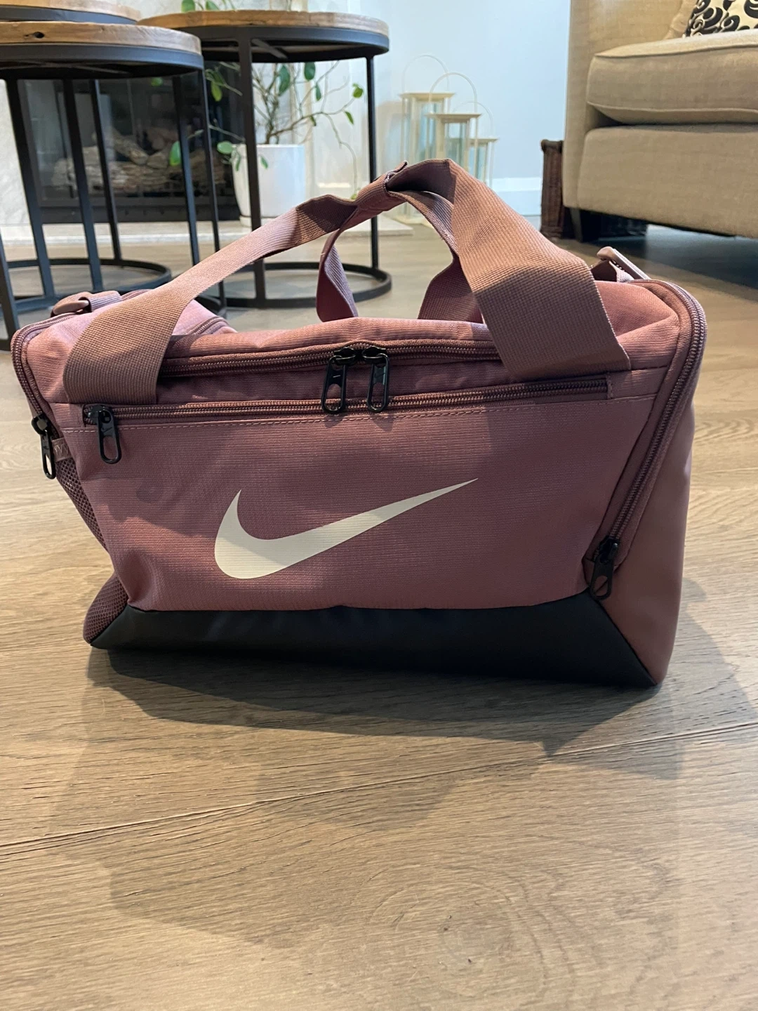 Here's a Nike duffel bag in a lovely mauve colour! It's in great condition and ready for your gym sessions or weekend getaways
