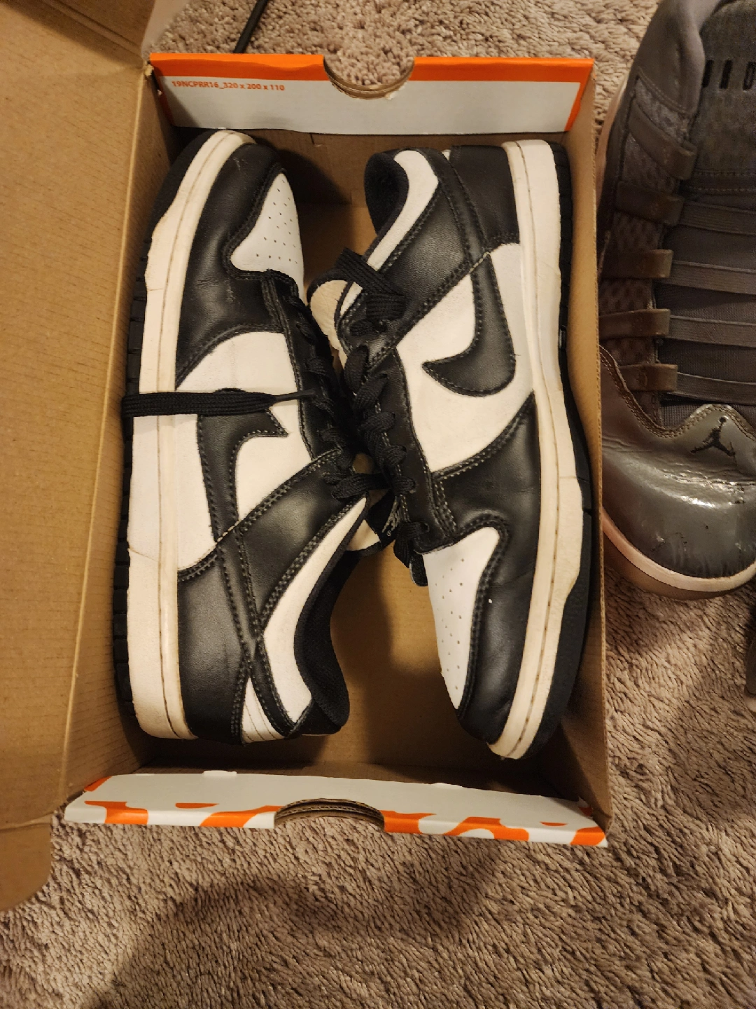20Selling a pair of Nike Dunk Low in black and white, along with a pair of Air Jordan 11 shoes. Both show signs of wear, as you can see in the photos. Comes with the original Nike box.