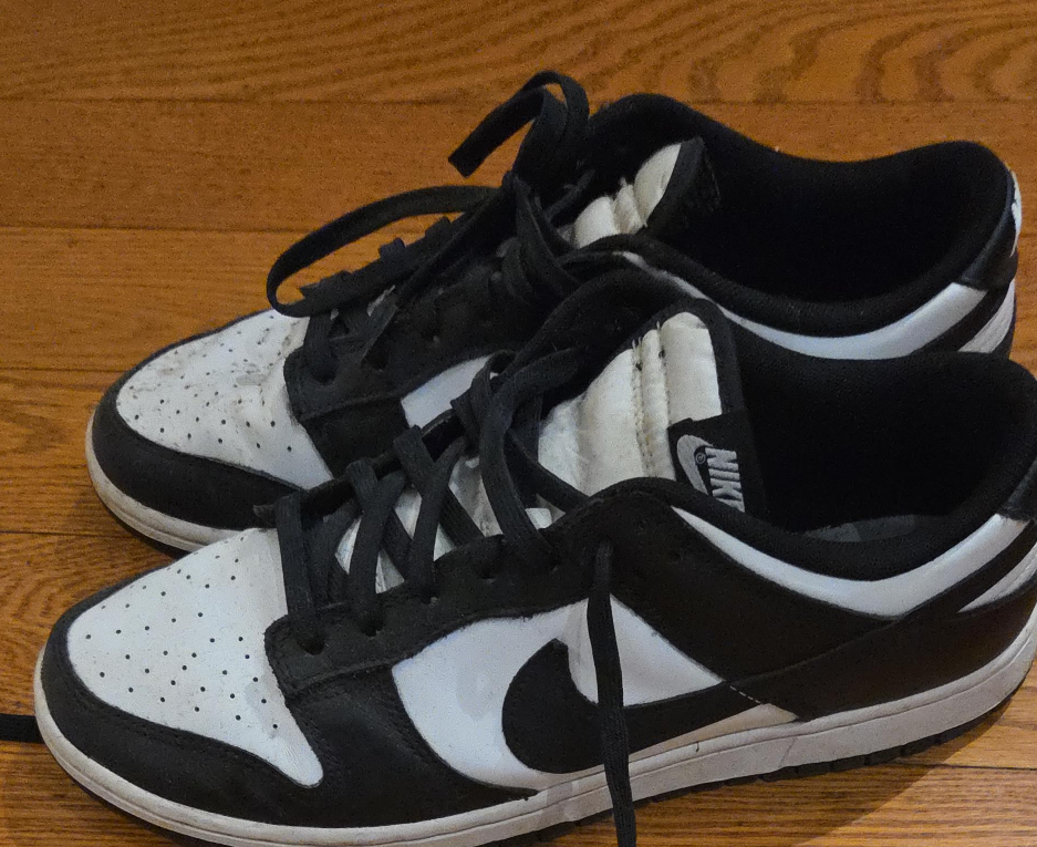 38Selling a pair of Nike Dunk Low shoes in a classic black and white colourway. These shoes have the iconic Nike swoosh and are in good condition for everyday wear. Perfect for adding a stylish touch to any outfit!
