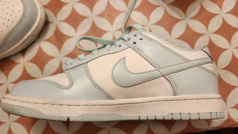 10Selling a pair of Nike Dunk Low sneakers in a cool blue and white colourway. They come with the original box. Perfect for everyday wear!