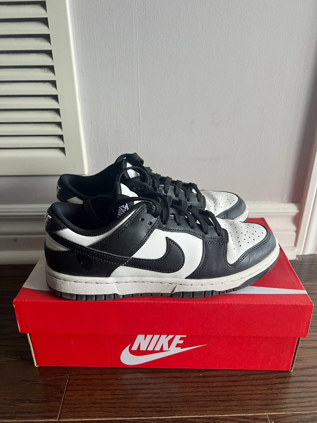 Selling a pair of Nike Dunk Low Panda. They are black and white, and come with the box. Great shoes for everyday wear!