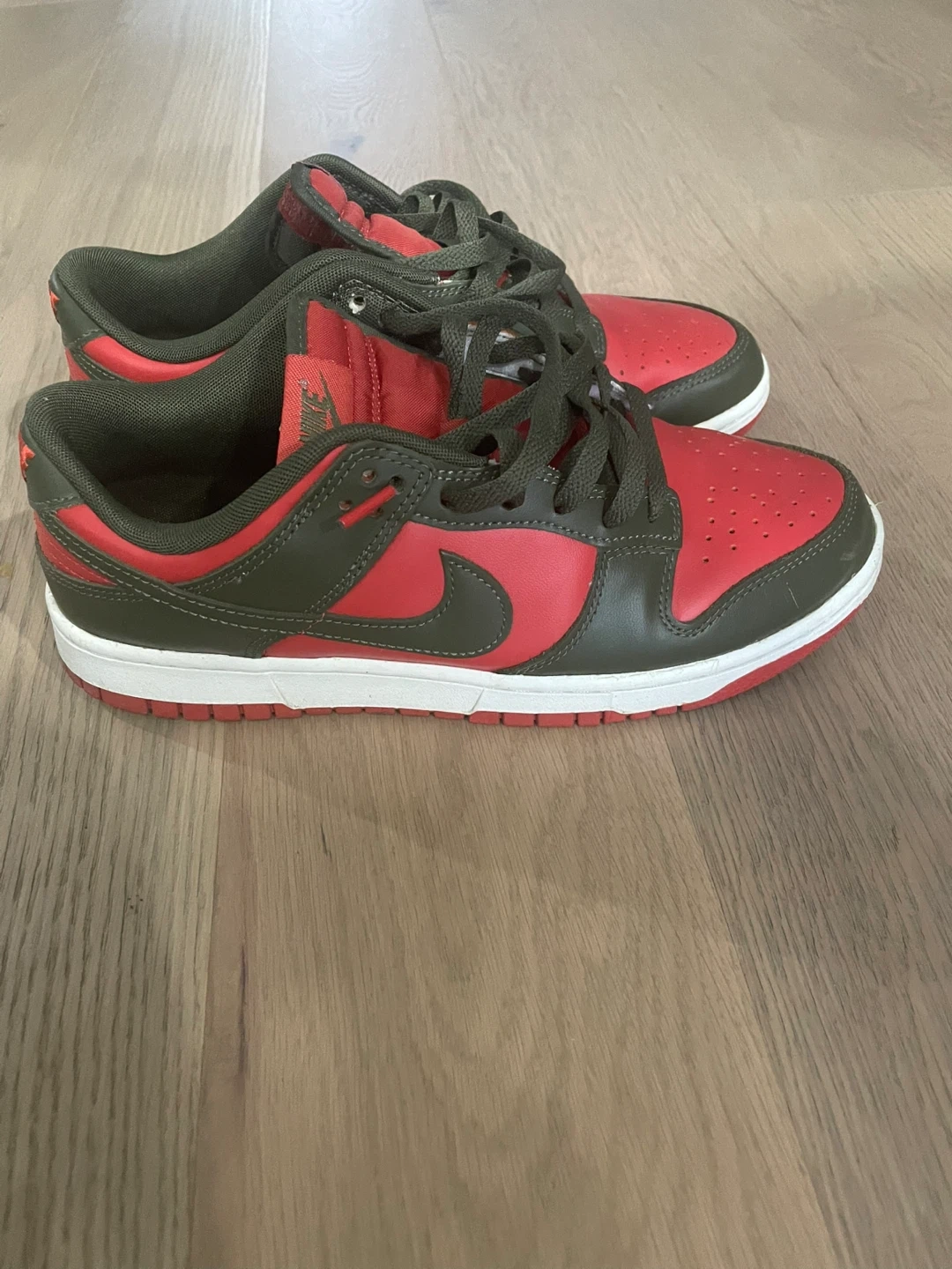 65Selling a pair of Nike Dunk Lows in a red and olive colourway. They're in great shape and ready for a new home!