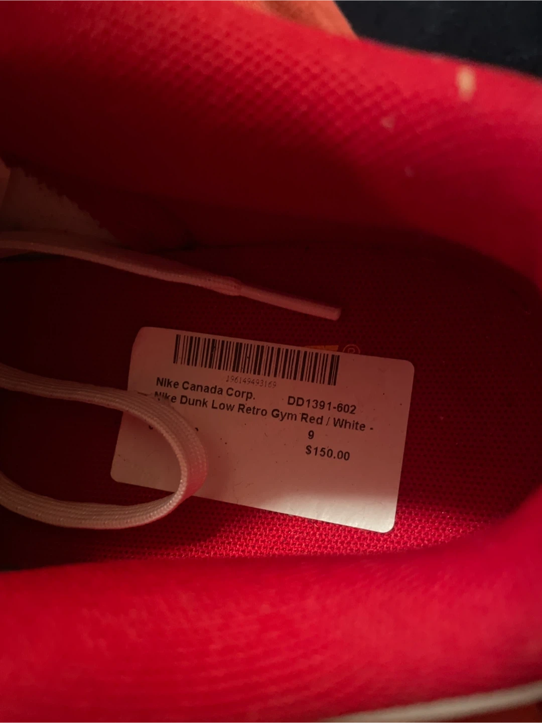 15Selling a pair of Nike Dunk Low Retro in Gym Red and White, size 9. They come with the original box. Originally bought for $150.00