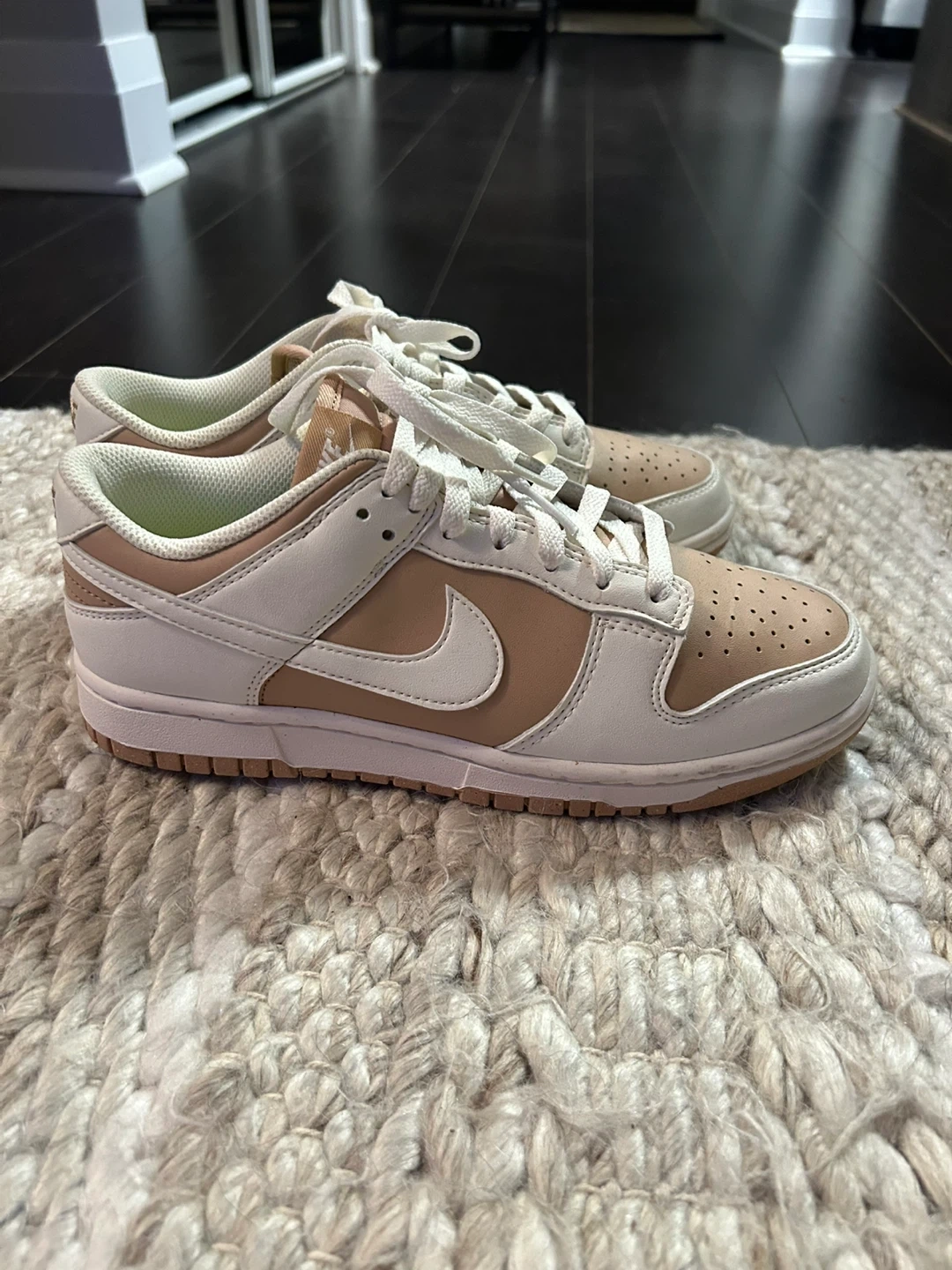 Selling a pair of Nike Dunk Low shoes in women's size US 8. They are in great condition and ready for a new home! The colour is a lovely neutral combination of white and tan.