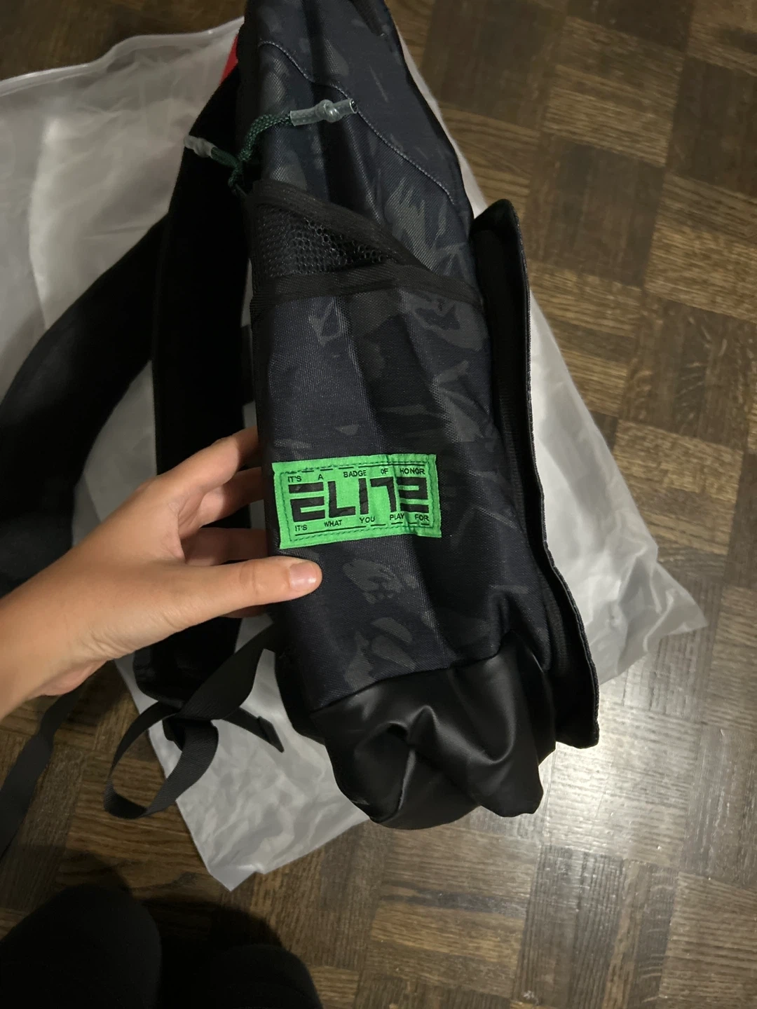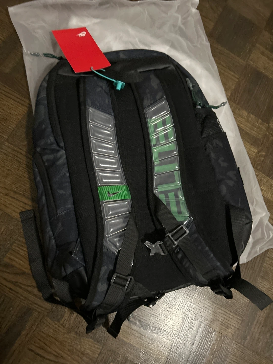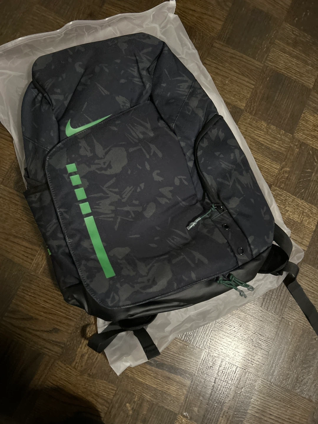 Selling a Nike Elite backpack in a stylish black and green pattern! It's in great condition and ready for a new owner. Perfect for school, sports, or everyday use