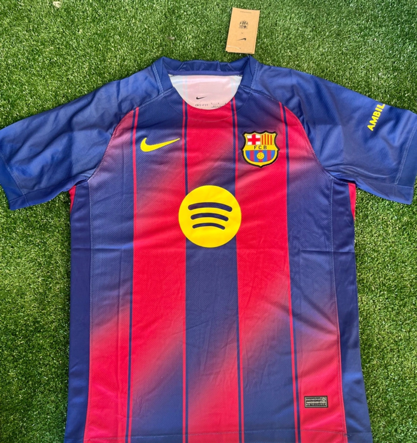 25** More Shirts at Vanshirts.ca ** Barcelona New Season Home Jersey 25/26. Fan Version - Embroidered club logo and great fit for an authentic look and feel. Sizing: Fits true to regular North American sizing. Please refer to the size guide to ensure the best fit. Try-ons are welcome before purchase. Pickup Options: Pickup available in Downtown Vancouver or East Vancouver (pickup-only — full addresses provided after confirming your order). Please note: We are not a walk-in retail store. Customization Options: Custom Name & Number Printing: $5 Upgrade to Long Sleeve: $5 Shorts: $10 Looking for other clubs or styles? We stock a wide selection of jerseys and accept custom requests. Multi-shirt discounts available — just ask!