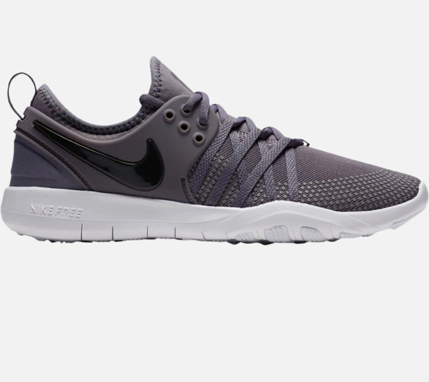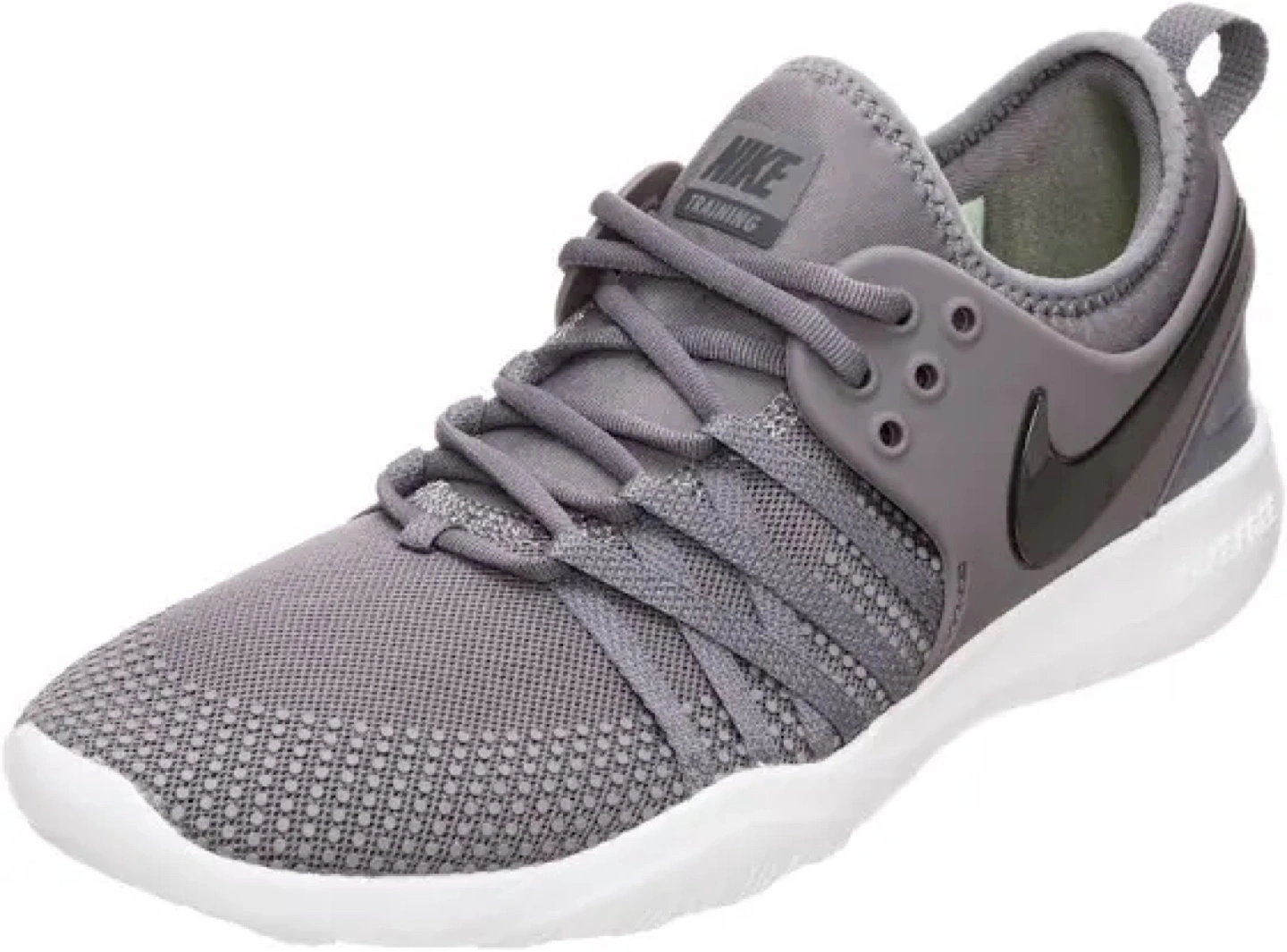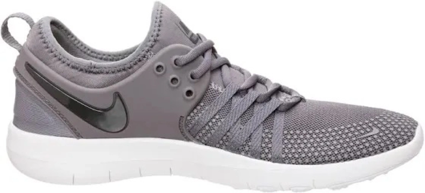 13Grey and white Nike Free women's training shoes. Low-top design. Breathable fabric upper. Comfortable and supportive. Great for workouts. Never worn before.