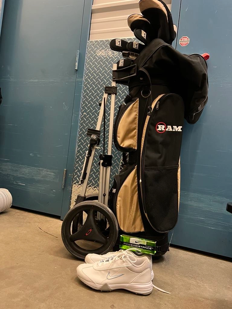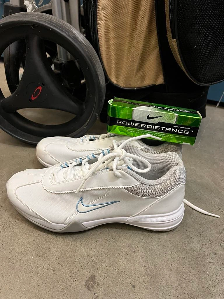 15White Nike golf shoes (like new). Golf clubs set (good) Golf Balls (like new)