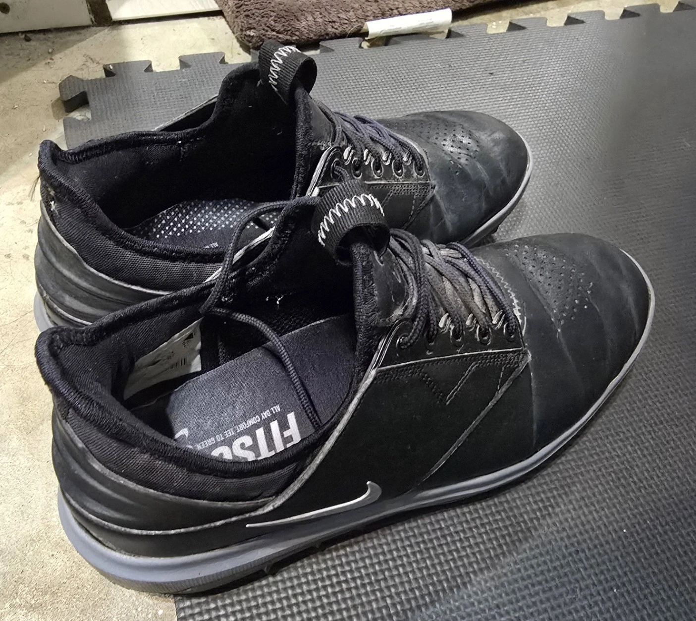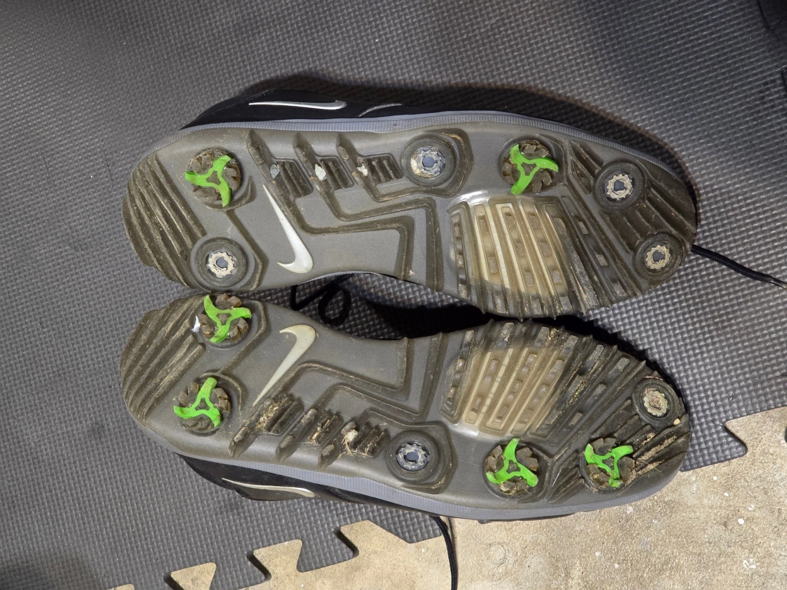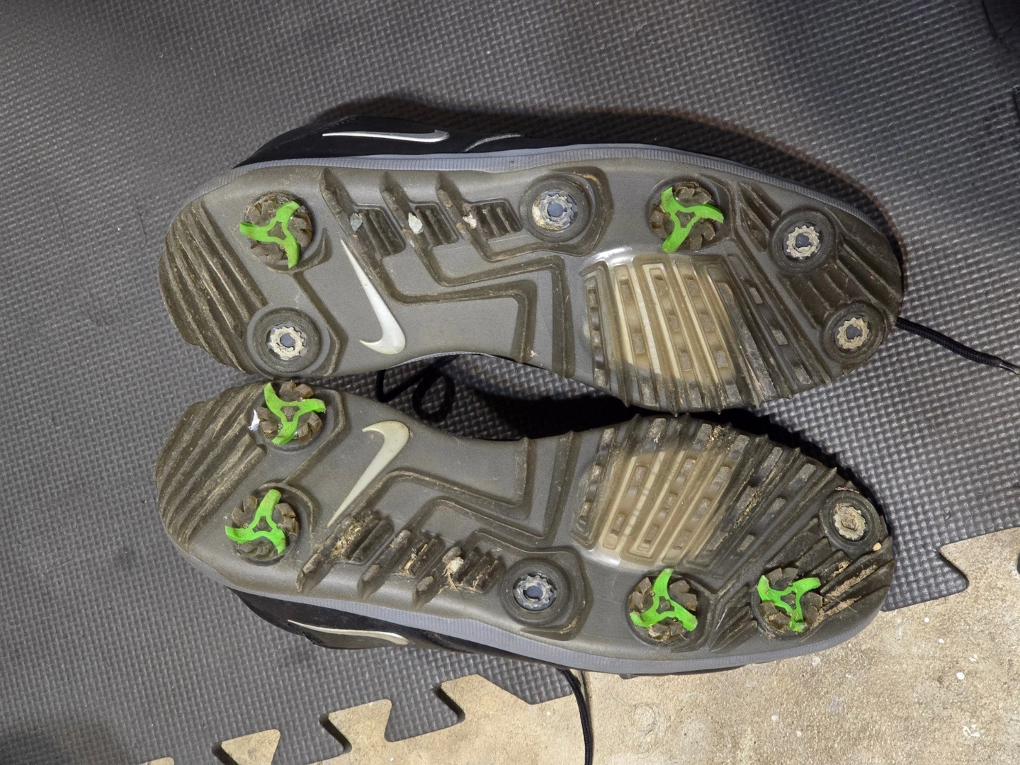 15In overall great shape size 9.5 mens, these shoes have amazing grip even with the missing spikes but replacement spikes are pretty cheap online or at Golf Town. Asking $45 obo
