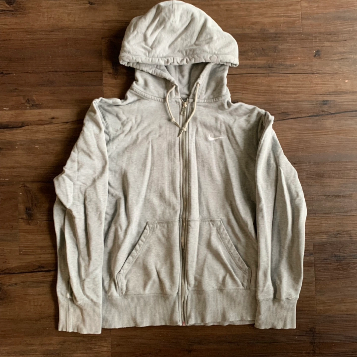 16Nike Gray Zip Up Hoodie Beautiful and minimalistic Nike zip hoodie,classic logo on the chest,embroidered zipper and hood laces.Amazing choice for everyday wear. Size:Medium In Good Condition(Has few small holes near cuffs) and small stain on the sleeve(see photos) dm for measurements dm for any questions/shipping adjustments open to offers. Items are not refundable after receiving, so please inspect the item very carefully. Local pick up or meetup.Delivery for an extra fee. Pickup at Maples or Garden City area.