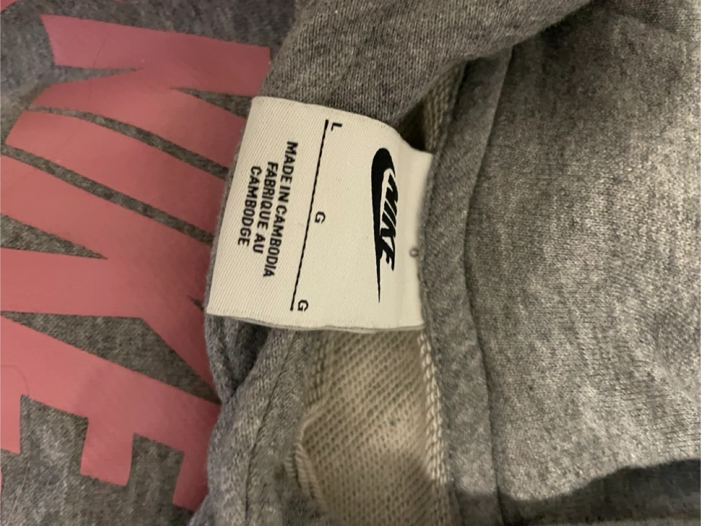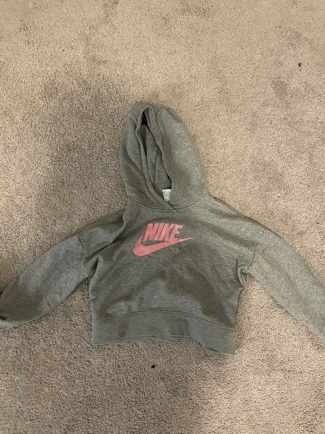 15Selling a gently used Nike hoodie in grey. It's a size L and in great shape! Perfect for staying cozy.Kids size.