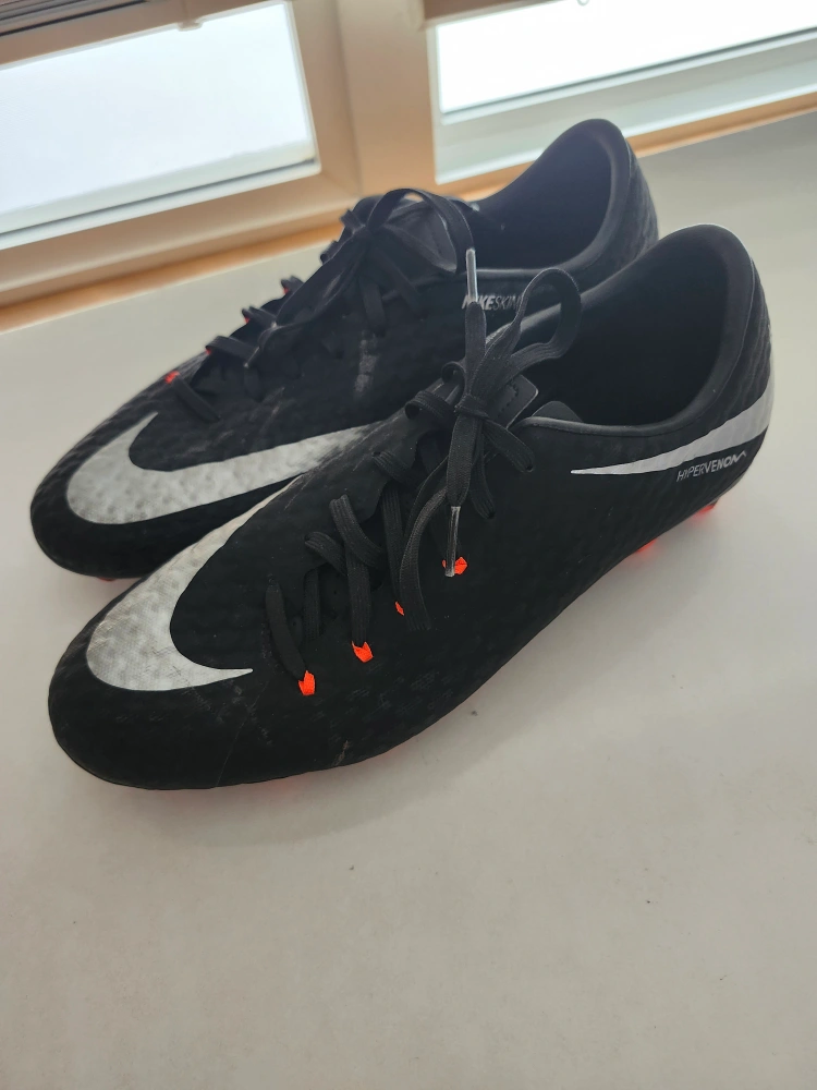 143Men's Nike Hypervenom Phatal FG soccer cleats. Black with orange accents. Size 9 US men's. used a few times.
