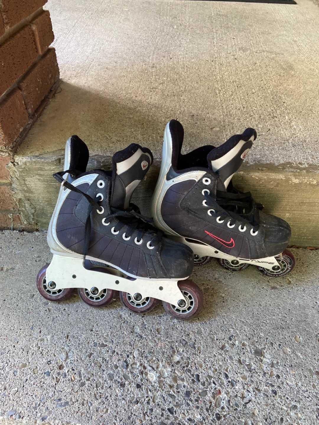 Selling a pair of Nike inline roller skates. They show some signs of use but are still in good condition for recreational skating. Great for anyone looking to get into roller skating or just needs a new pair! Junior size 3R