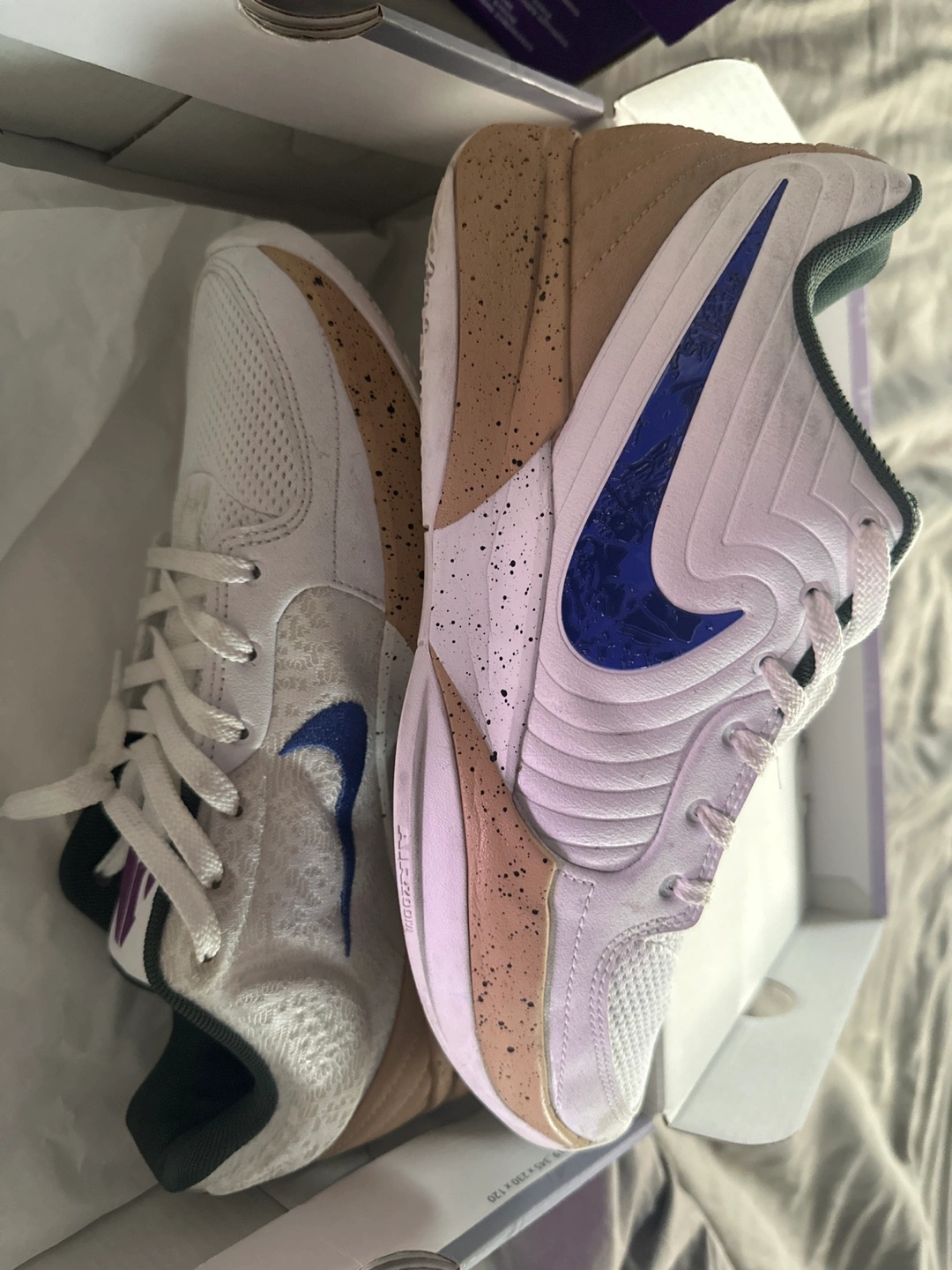98Pair of basketball shoes. White colourway. A great gift for someone you care about.