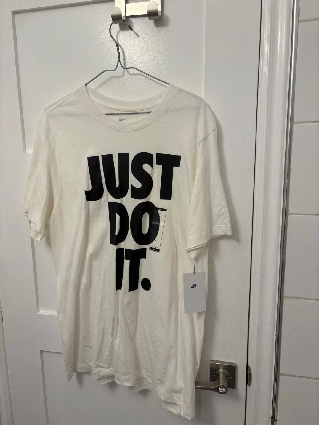 Here's a Nike T-shirt with the iconic "Just Do It" slogan! It's a crisp white colour and in great condition. Perfect for workouts or casual wear!