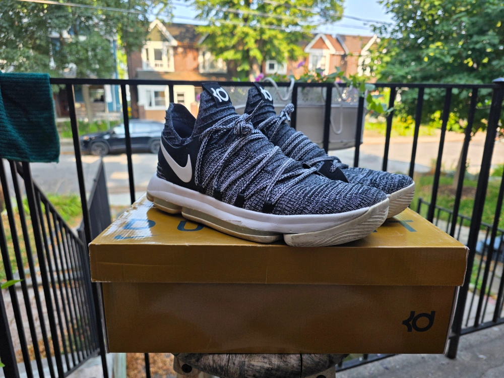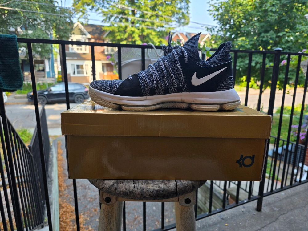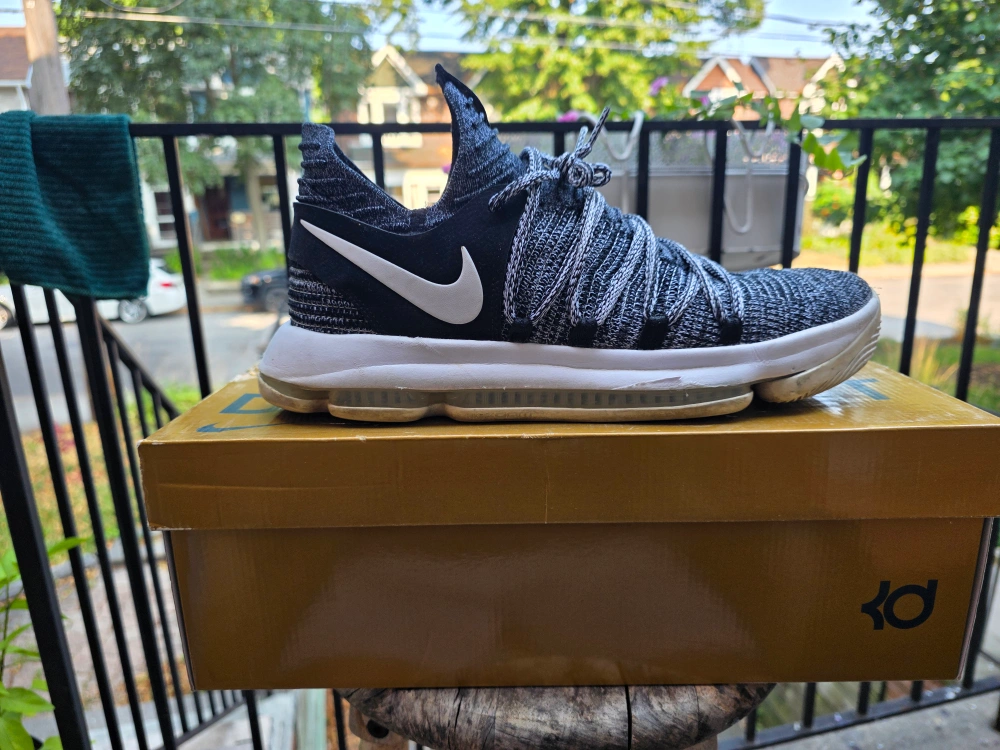 25Selling a pair of Nike KD 10 basketball shoes. They are in good condition and come with the original box.