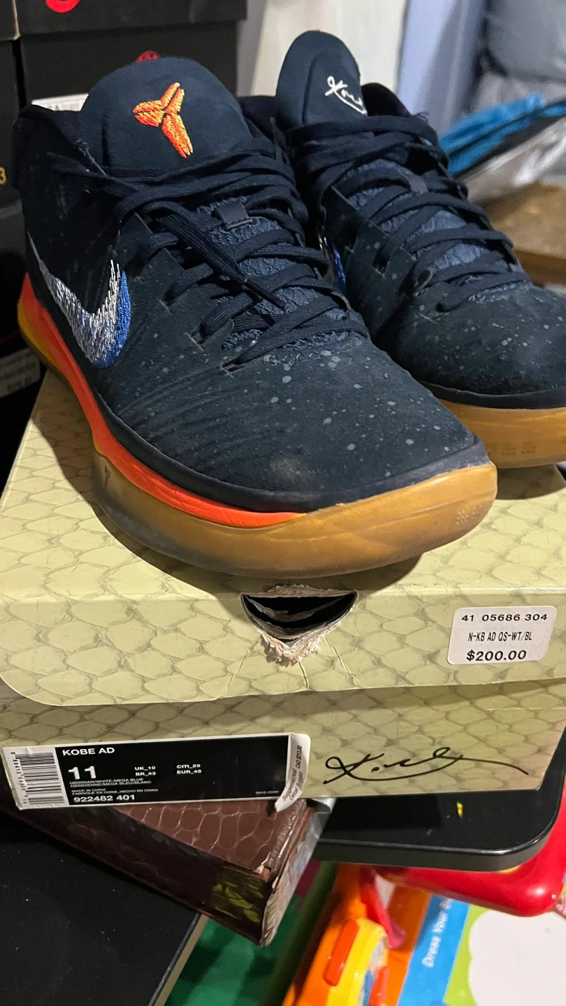 Selling a pair of Nike Kobe AD QS-WT basketball shoes in size 11. They show some signs of wear, but are still in good condition for playing ball. The original box is included. The original price on the box says $200.00