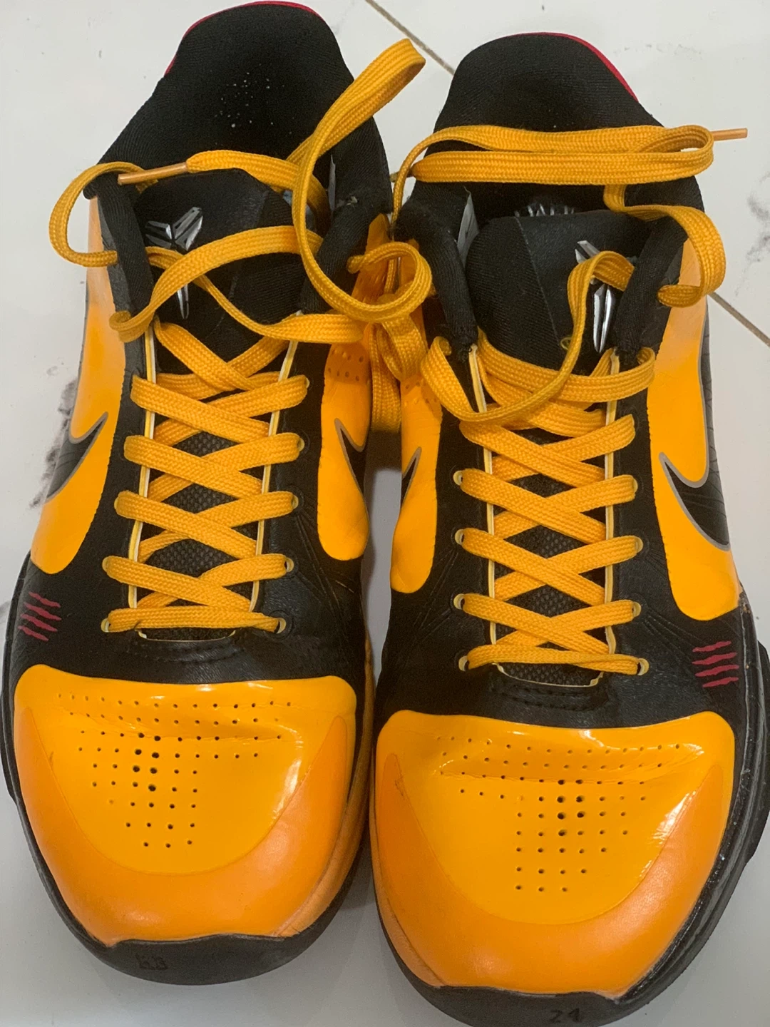 Selling a pair of Nike Kobe Venomenon 4 basketball shoes in size 9.5. They are in good condition and ready for the court or casual wear. These shoes feature a vibrant yellow and black colourway with the Kobe logo. They don’t have box. They have some thing in front but it doesn’t matter.