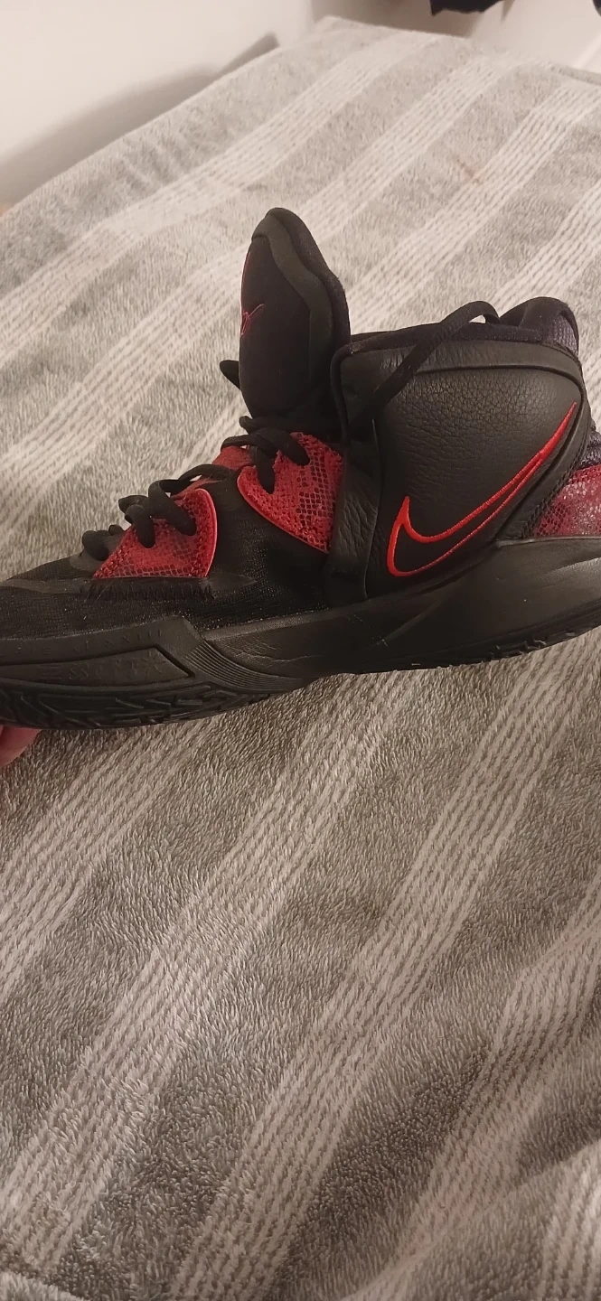 0Selling a pair of Nike Kyrie Flytrap 5 basketball shoes in size 11. They're black and red, with the number 771 on the inside tongue. Great for playing ball or just rocking around town!
