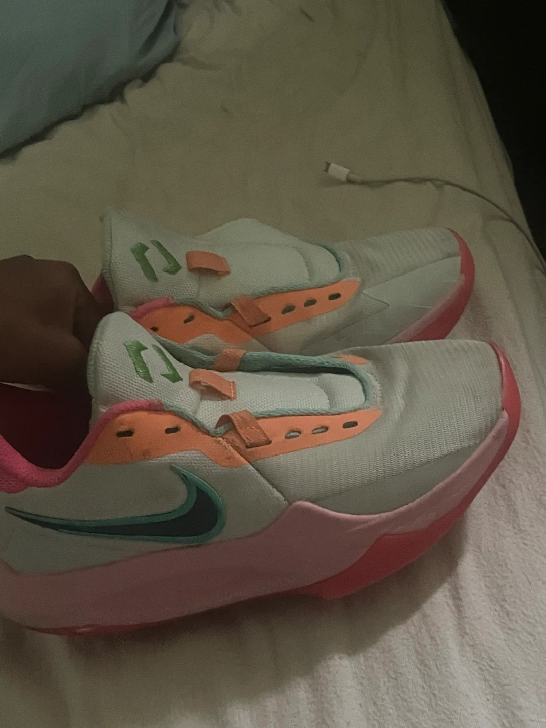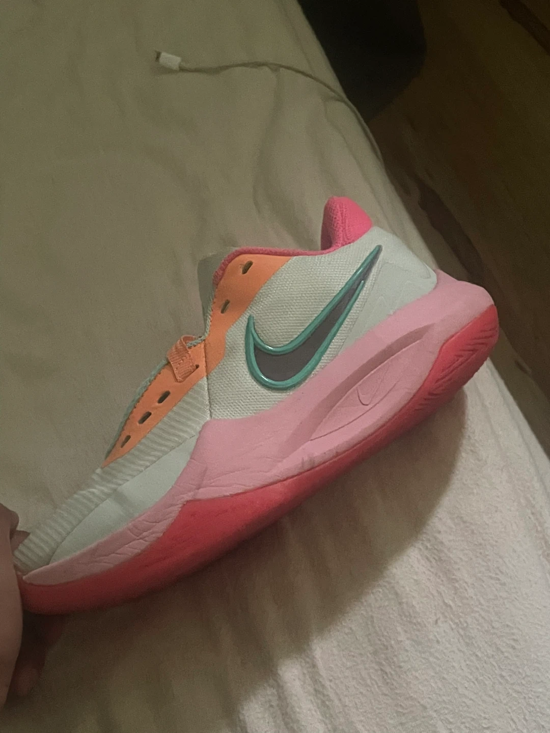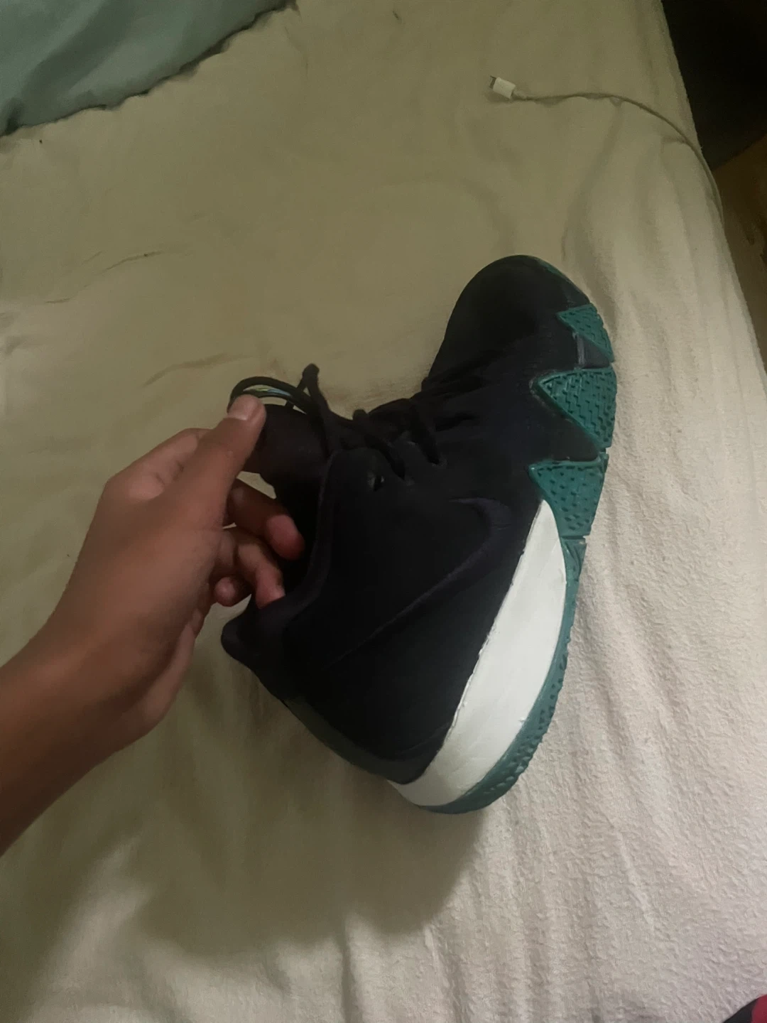 15Selling a pair of Nike Kyrie IV basketball shoes in size 8.5Y. They have a black and green color scheme, and are in good condition!