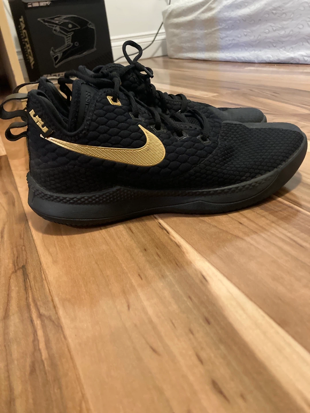 Selling a pair of Nike LeBron Witness III shoes in black and gold. They are size 10,good condition and ready to be purchased