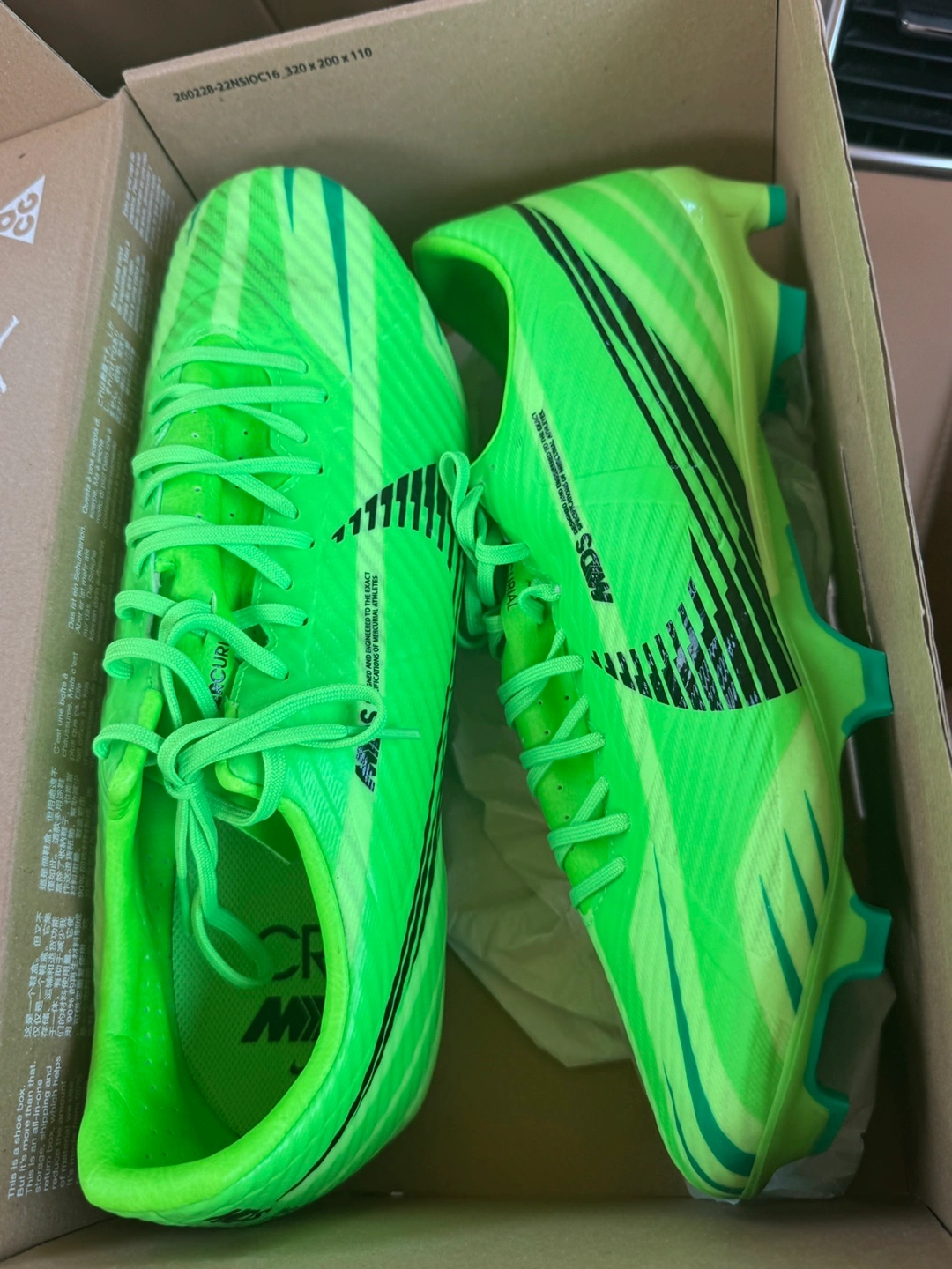 Selling a pair of Nike Mercurial soccer cleats in a vibrant green colour! They come in the original box. Perfect for hitting the field in style and comfort