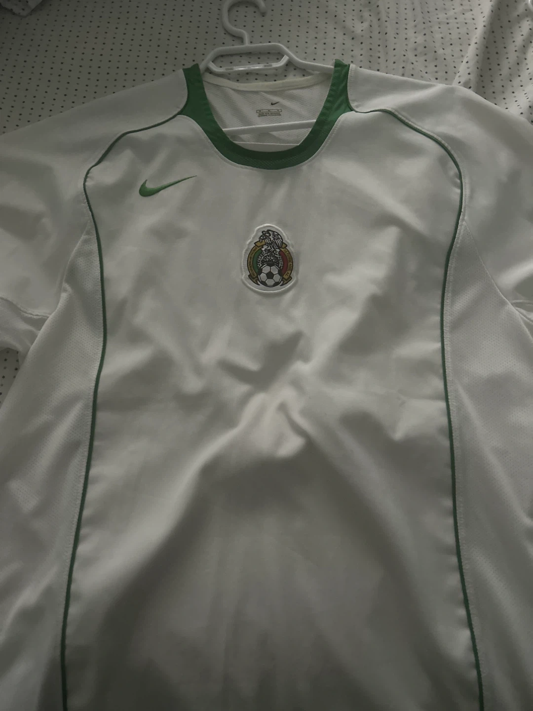 Selling a Nike Mexico soccer jersey in size medium. It's in great condition and features the classic white and green colour scheme.