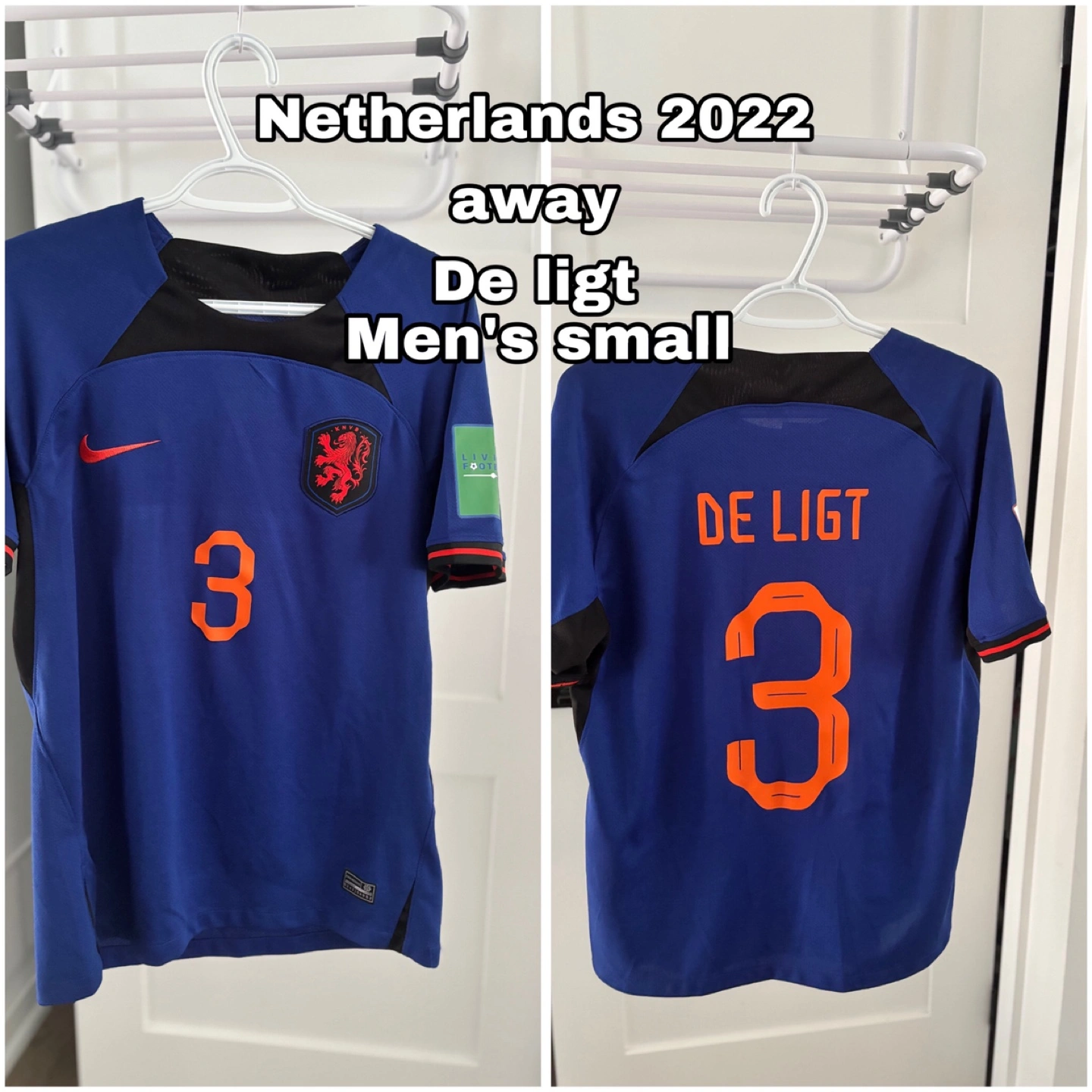 Selling a Nike Netherlands 2022 away jersey with De Ligt's name and number on the back. It's a men's size small and in great condition!
