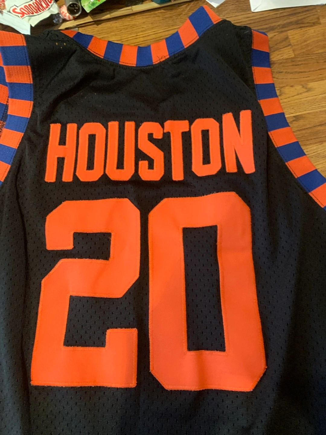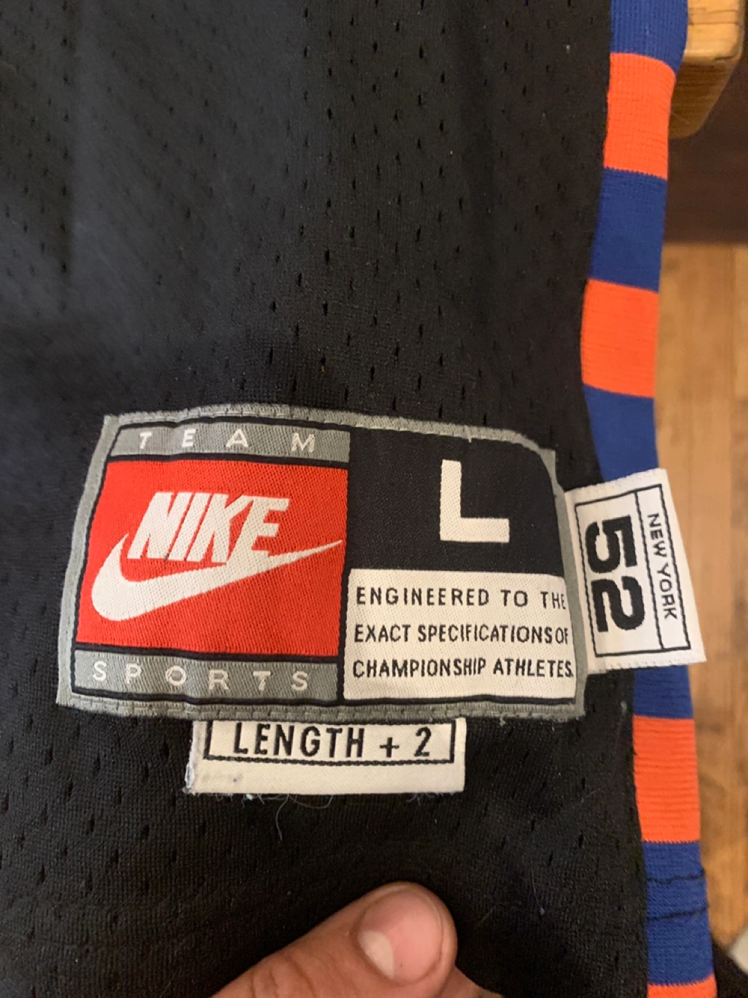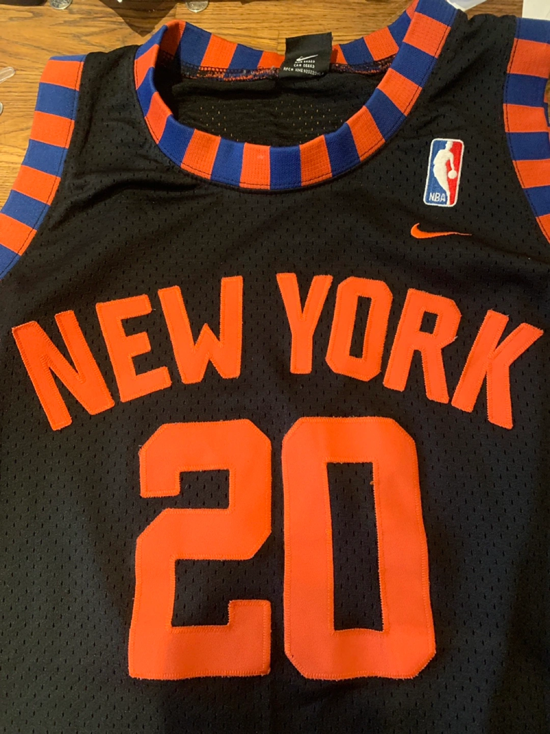 Selling a Nike New York Knicks jersey in size L. It's black with orange and blue trim