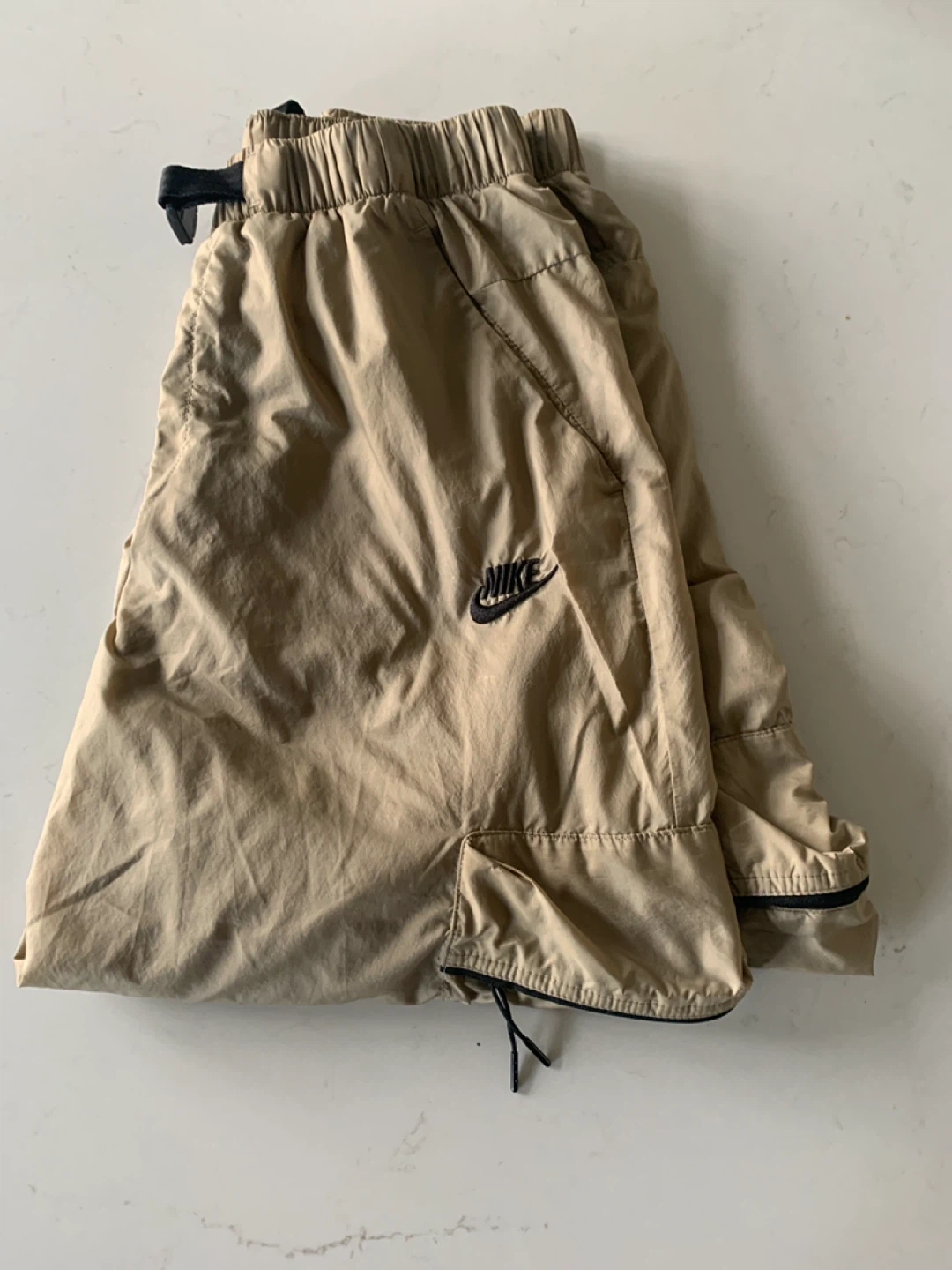 65Selling a pair of Nike woven pants in a neutral colour ( light brown ) also dry fit. They're in great condition and perfect for everyday wear! Size medium.