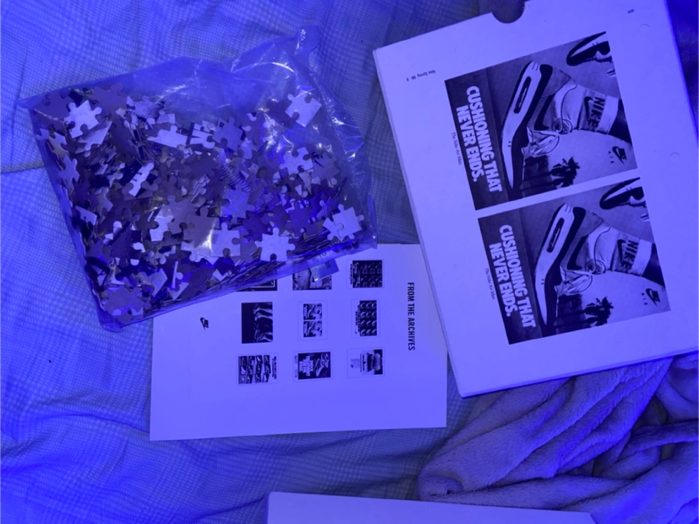 Selling a Nike Air Max puzzle with the theme 'Cushioning That Never Ends'! The box is included, and it contains all the pieces plus a card 'From the Archives'. It is number 240 out of 325