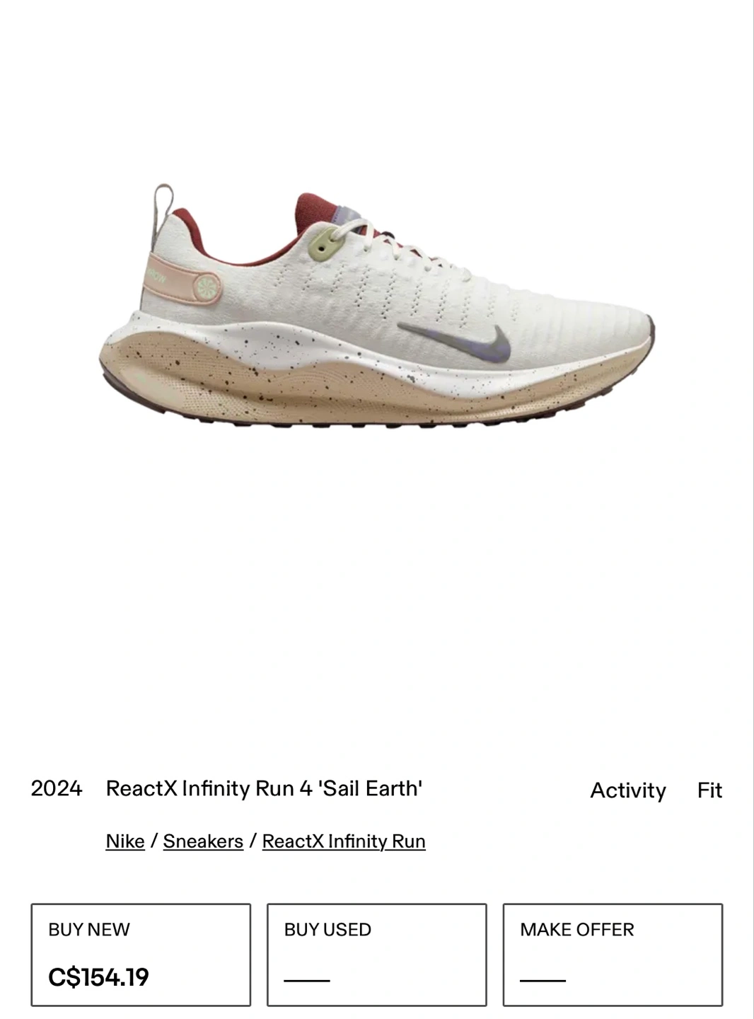 529Nike ReactX Infinity Run 4 'Sail Earth' Running Shoes - Size US 9.5