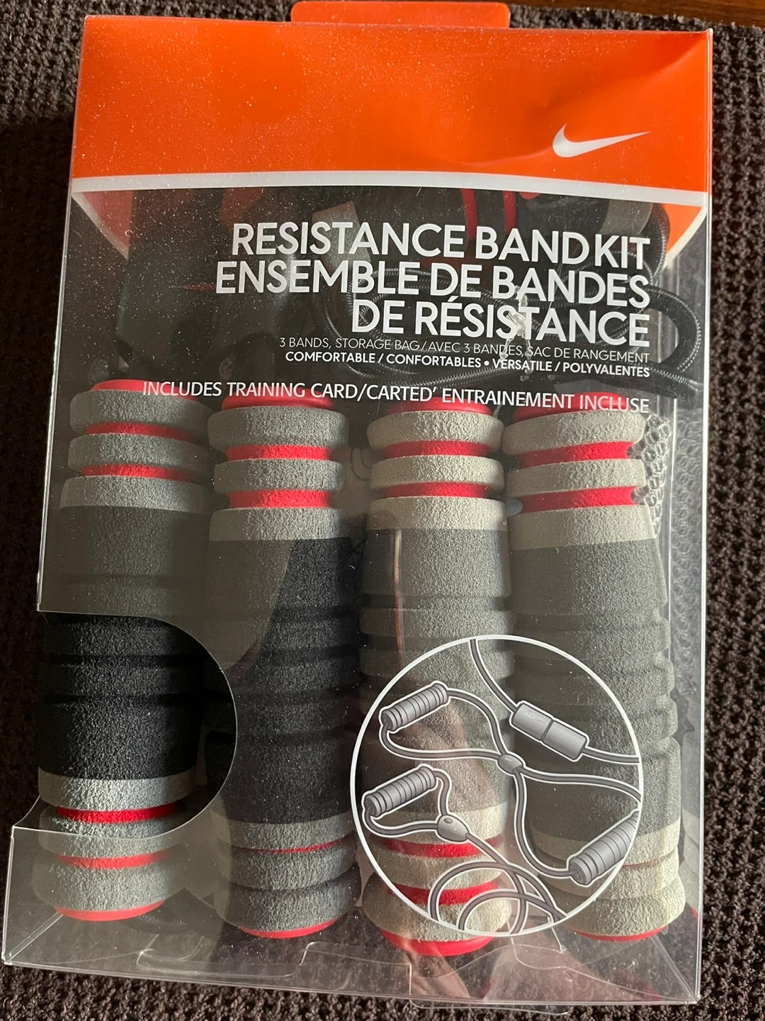 36Get ready to level up your workouts with this brand new Nike Resistance Band Kit! This set includes 3 resistance bands, a handy storage bag, and even a training card to help you get started. It's comfortable and versatile, perfect for getting a full body workout at home or on the go. The soft bands won't pinch your skin, so you can focus on your form and reach your fitness goals!