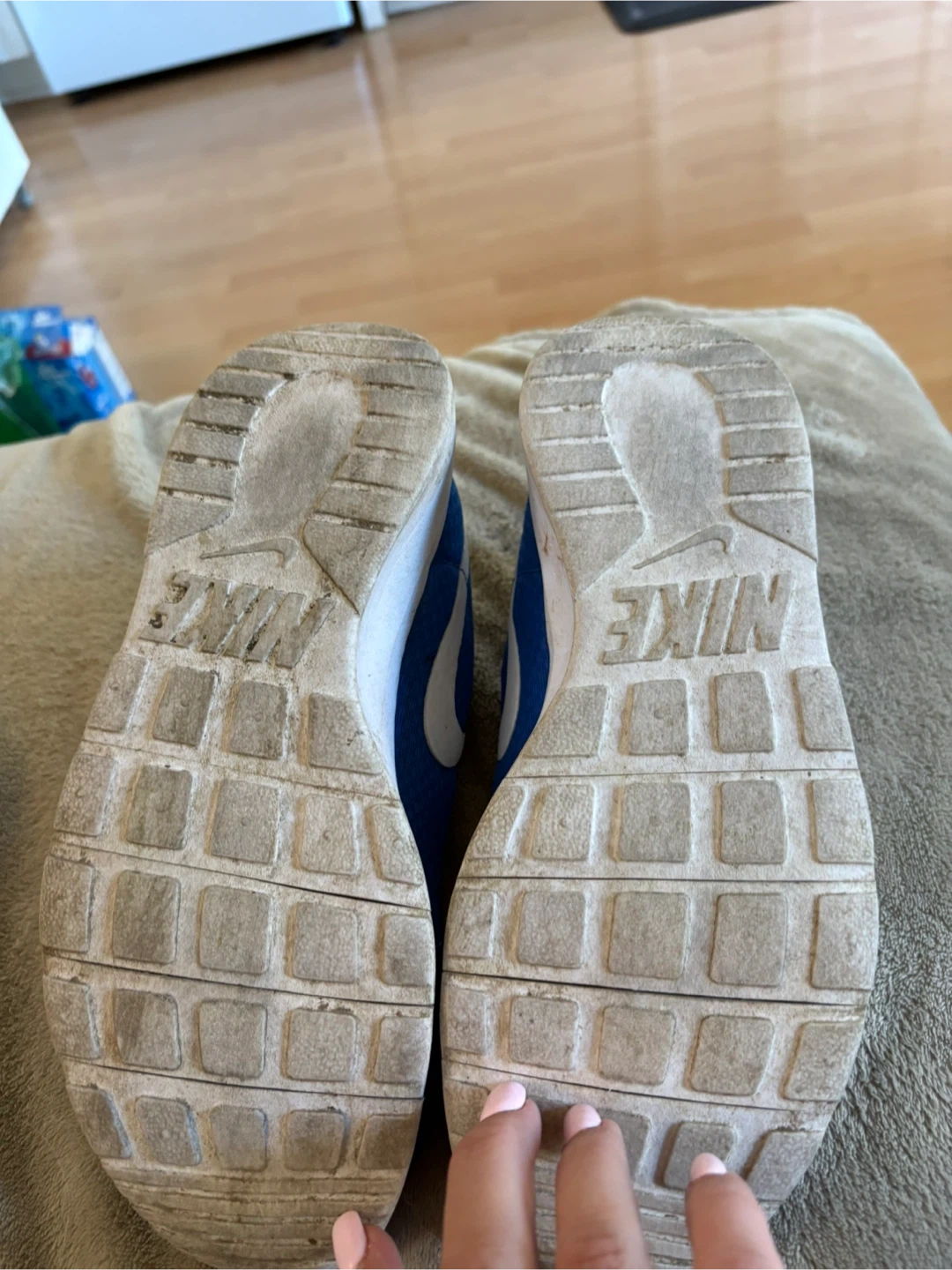 Selling a pair of Nike Revolution 6 running shoes in blue. They're in used condition,but still good Size is US 6Y