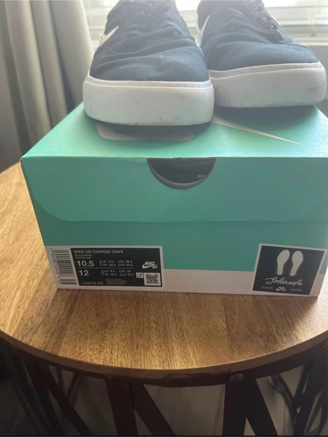10Selling a pair of Nike SB Charge Canvas shoes in size 10.5. They're in great shape and come with the original box! Perfect for skating or just kicking around town