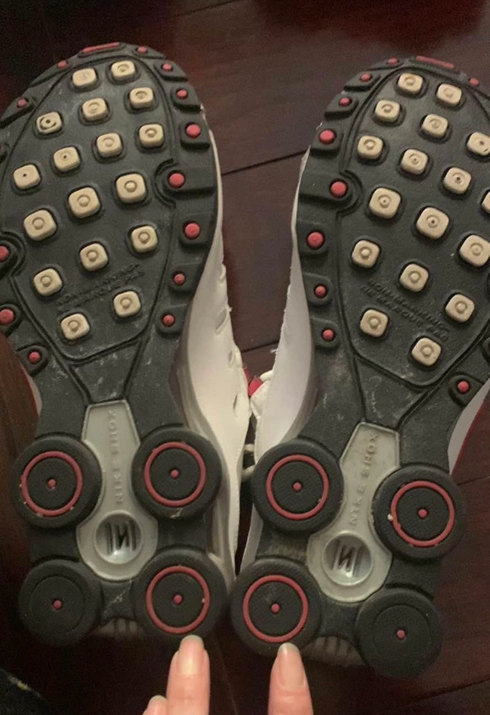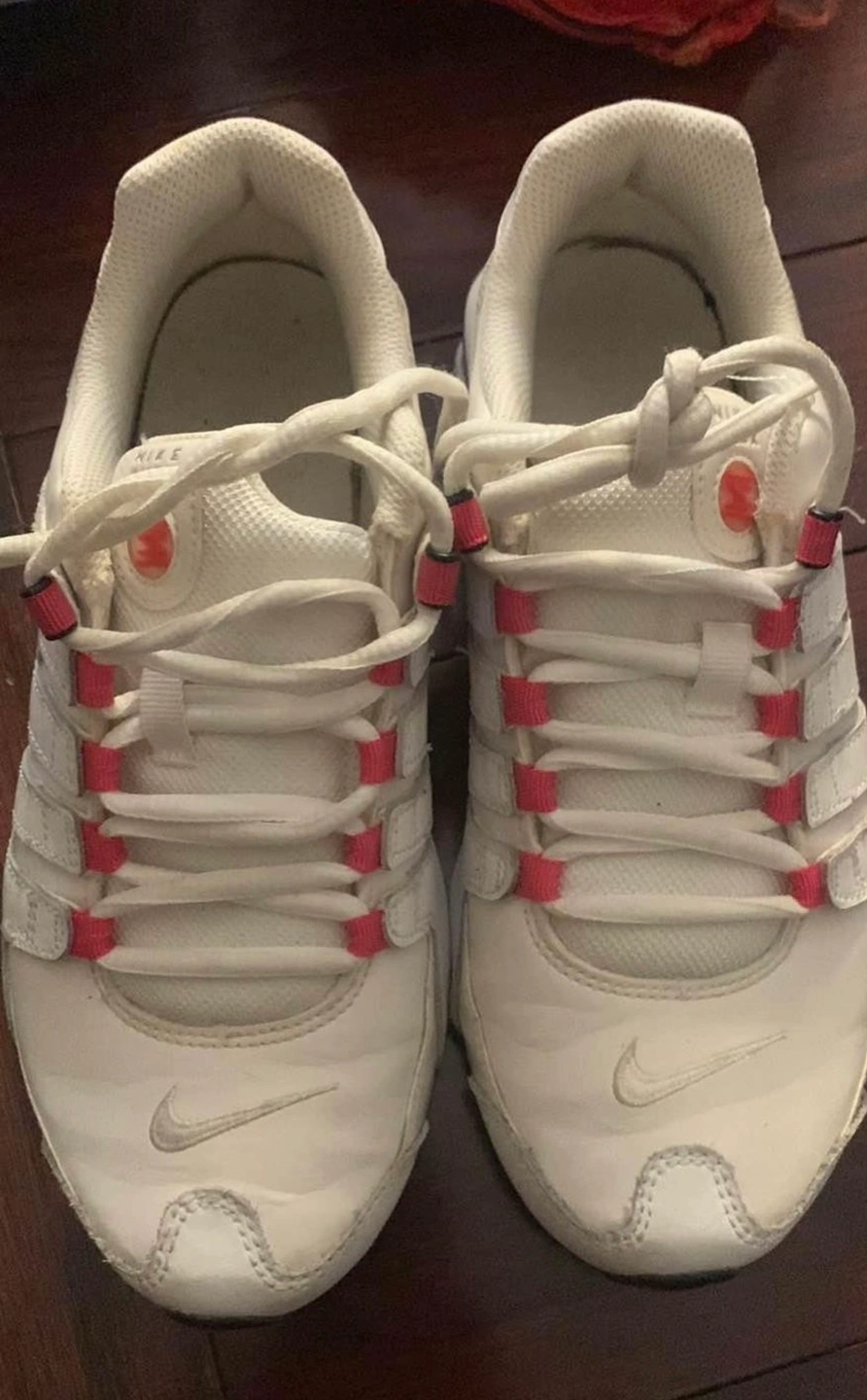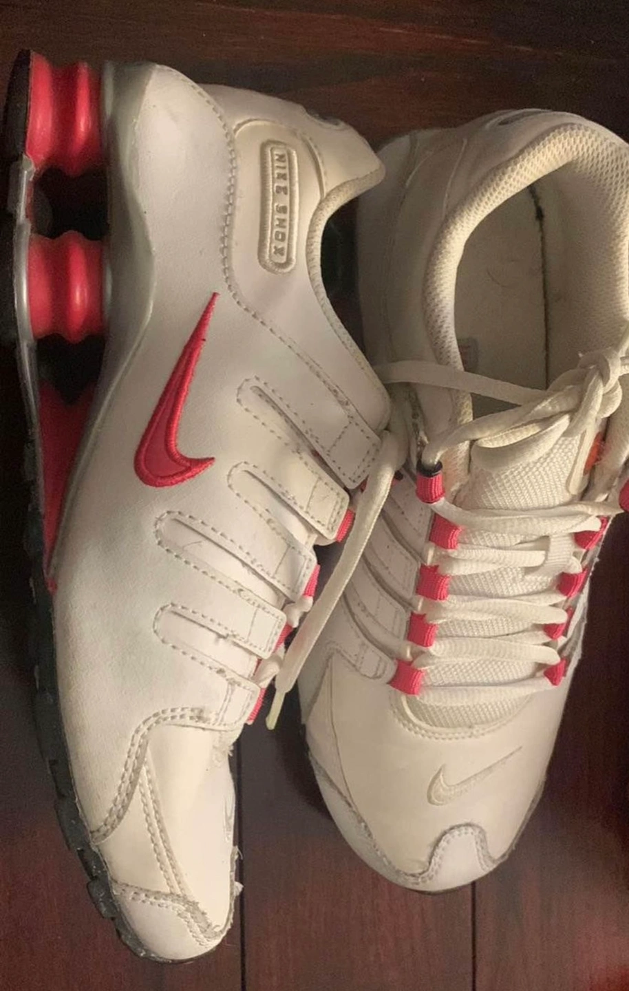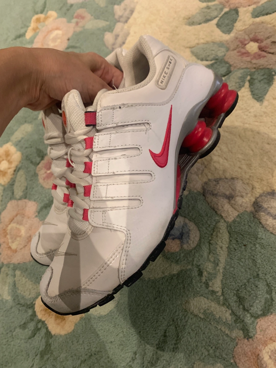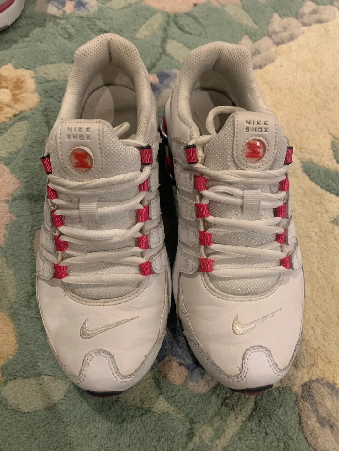 31White Nike Shox sneakers with pink accents. Size 4Y