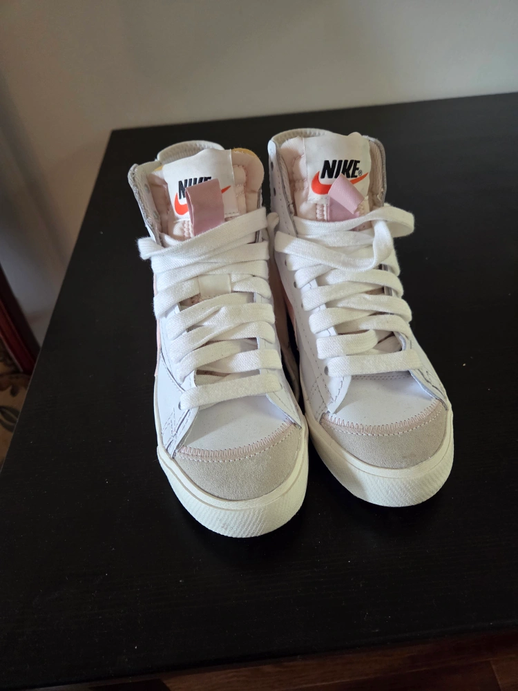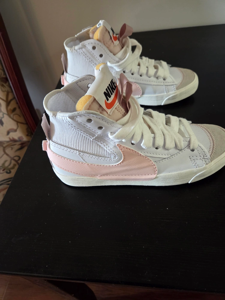 Selling a pair of Nike Sport shoes brand new. They feature a classic design with a white leather upper, pink accents, and a comfortable fit. Perfect for adding a touch of retro style to your wardrobe!