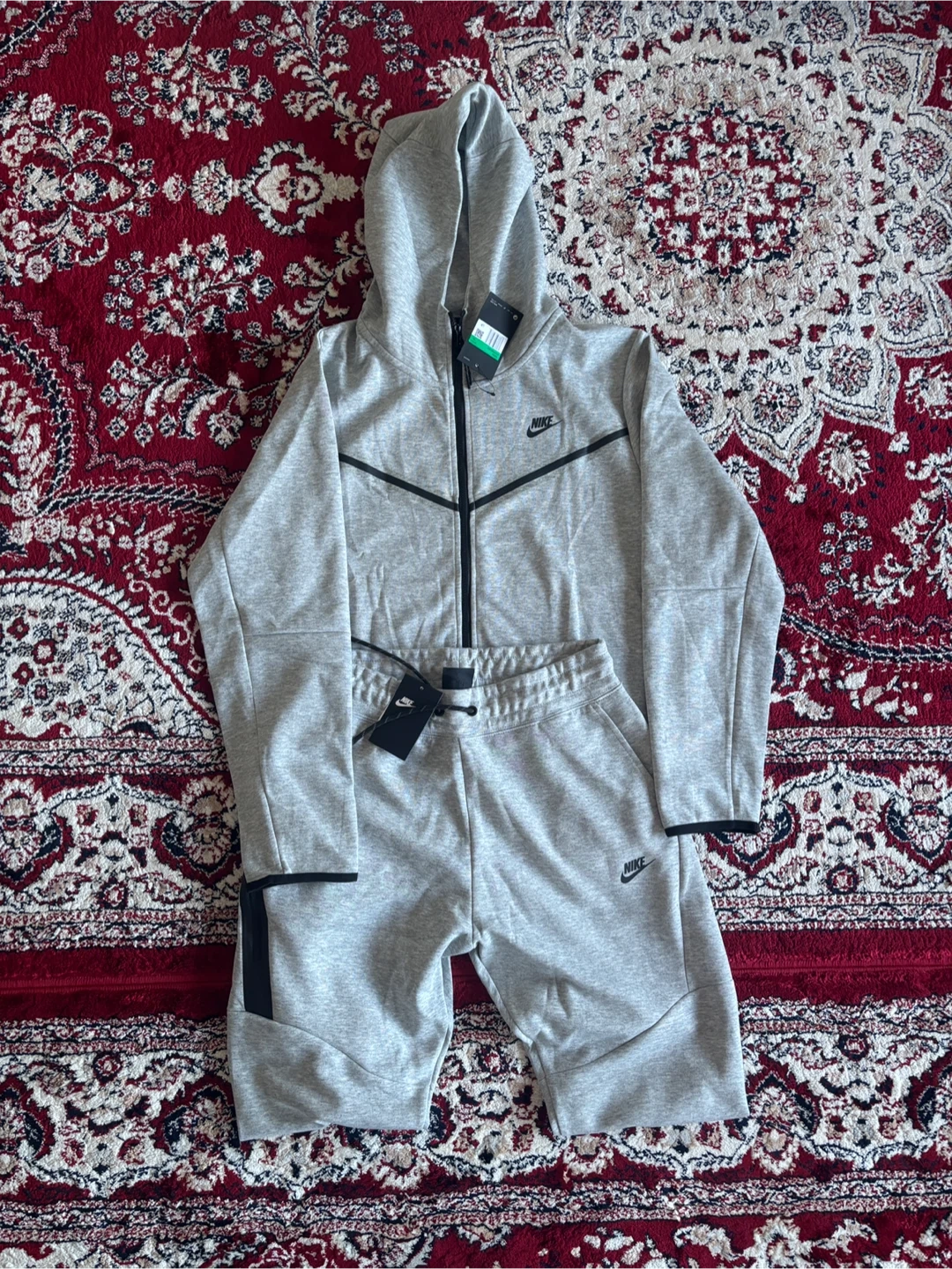 101Selling a brand new Nike Tech Fleece tracksuit in grey! This stylish and comfortable set includes both the hoodie and the pants. Perfect for workouts or casual wear!