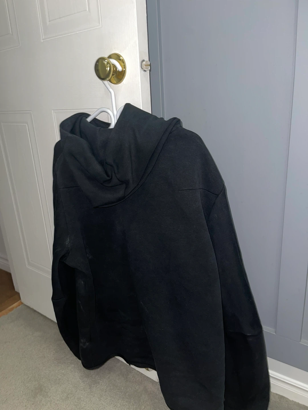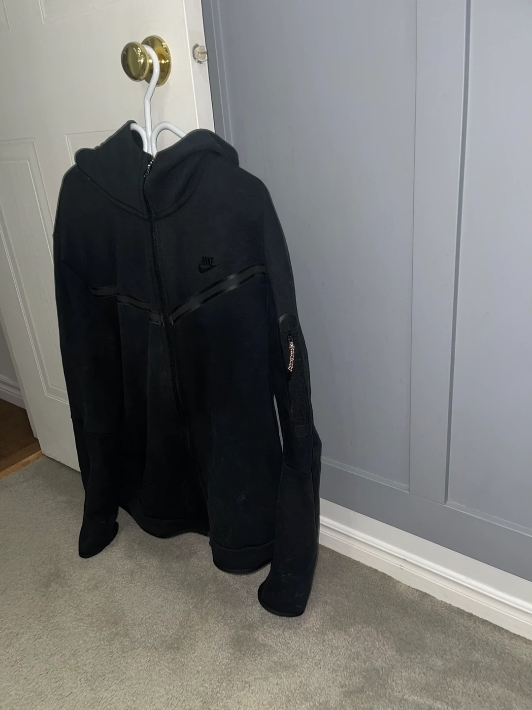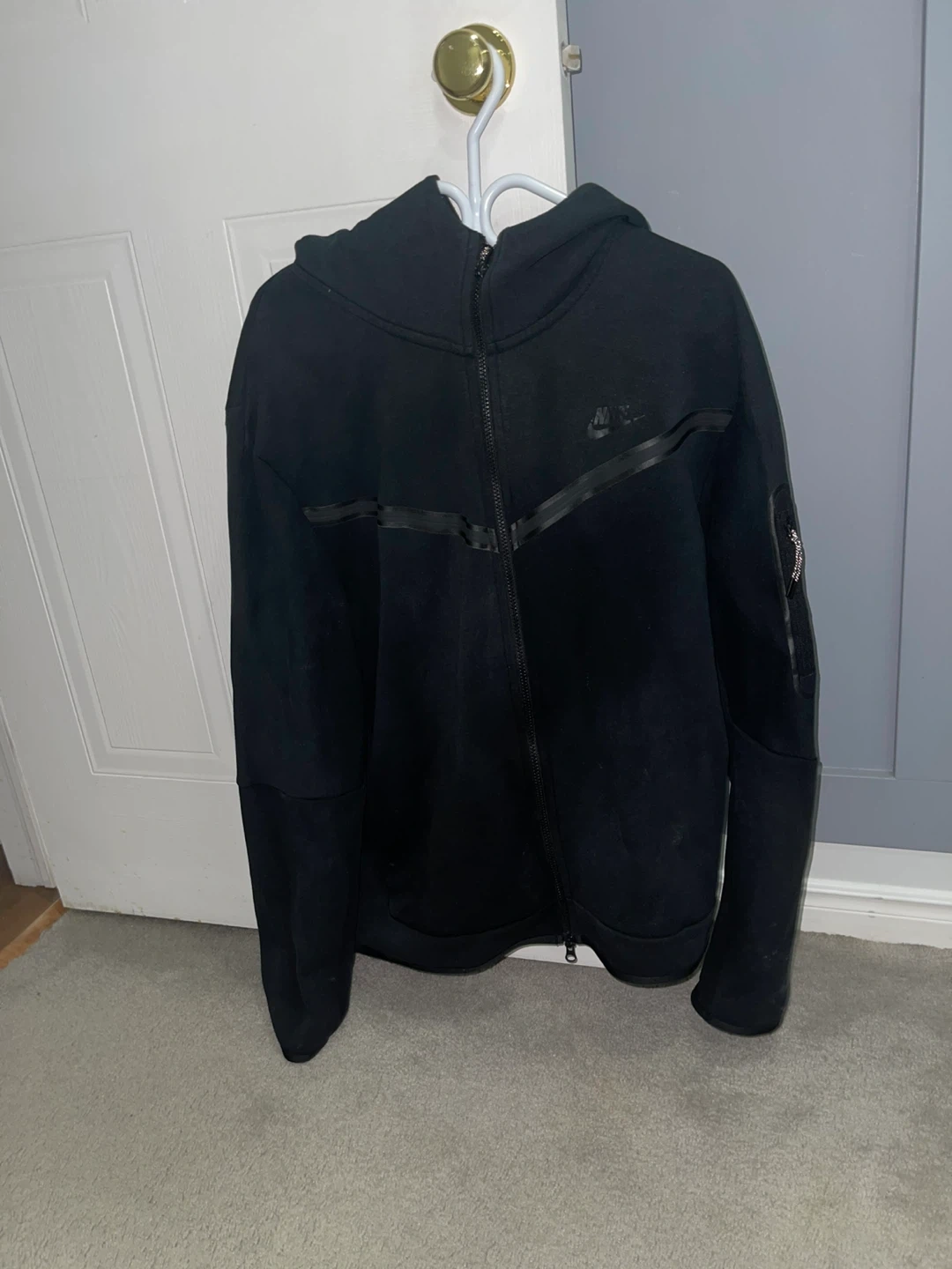 10Selling a Nike Tech Fleece hoodie in black, size XL. It's in good condition and ready for a new home! Perfect for layering or wearing on its own. The material is soft and comfortable, making it ideal for everyday wear. It features a full zip and a sleek design. Open to negotiations. First come first serve.