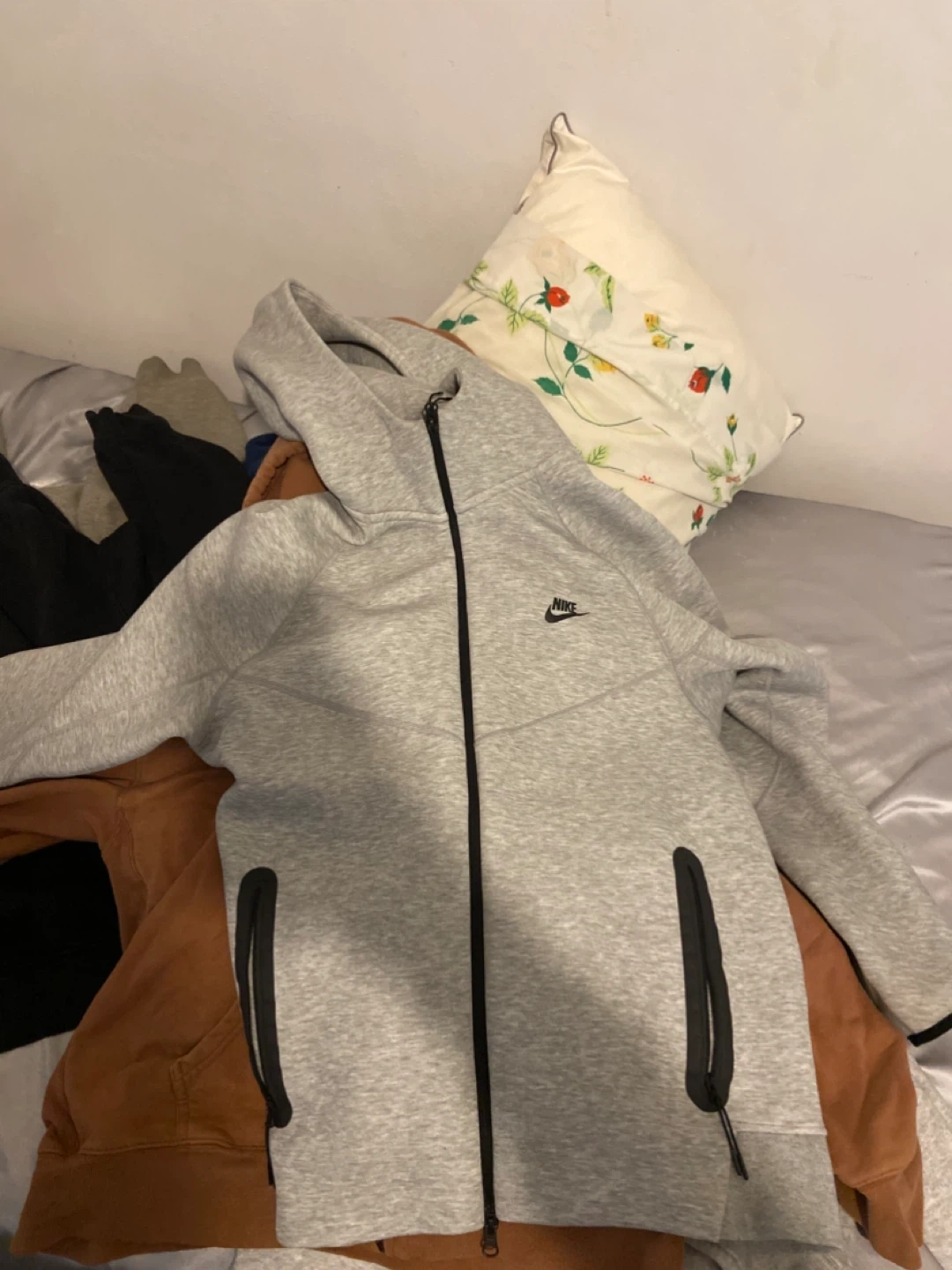 Selling a Nike Tech Fleece hoodie in grey. It's in great shape and ready for a new home! NEED GONE ASAP