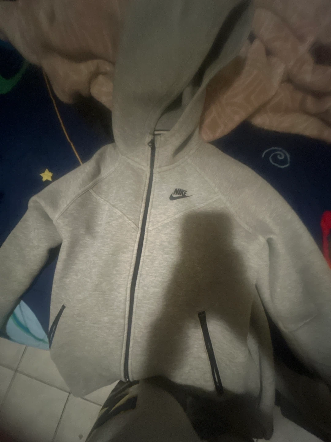 10Selling a Nike Tech Fleece hoodie in grey, size XL. It's in great condition and ready for a new home! Perfect for staying cozy and stylish.