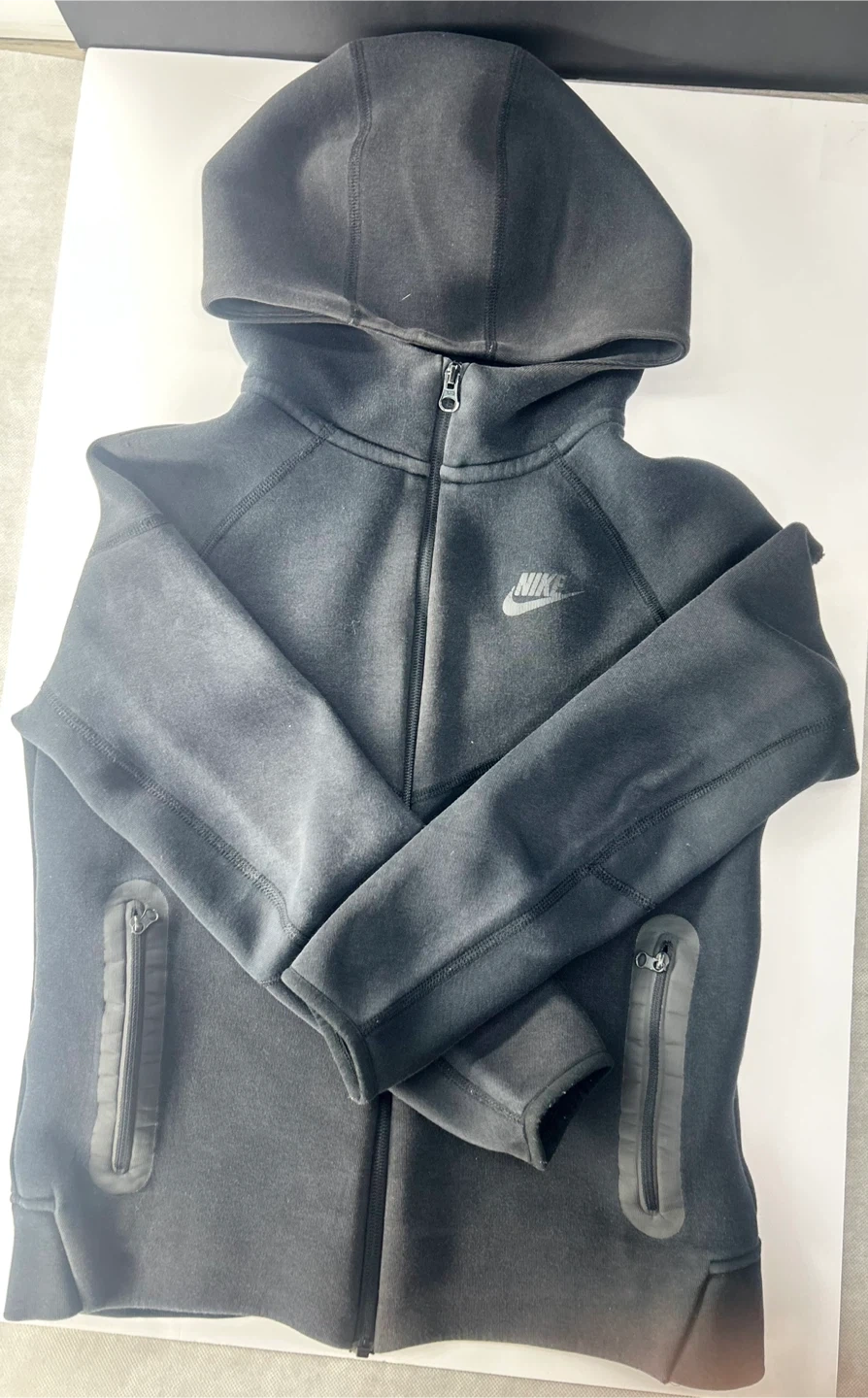 15Selling a Nike Tech Fleece hoodie in size large kids. It's in good condition and perfect for layering or wearing on its own. It has a sleek design and is made from a comfortable fleece material.